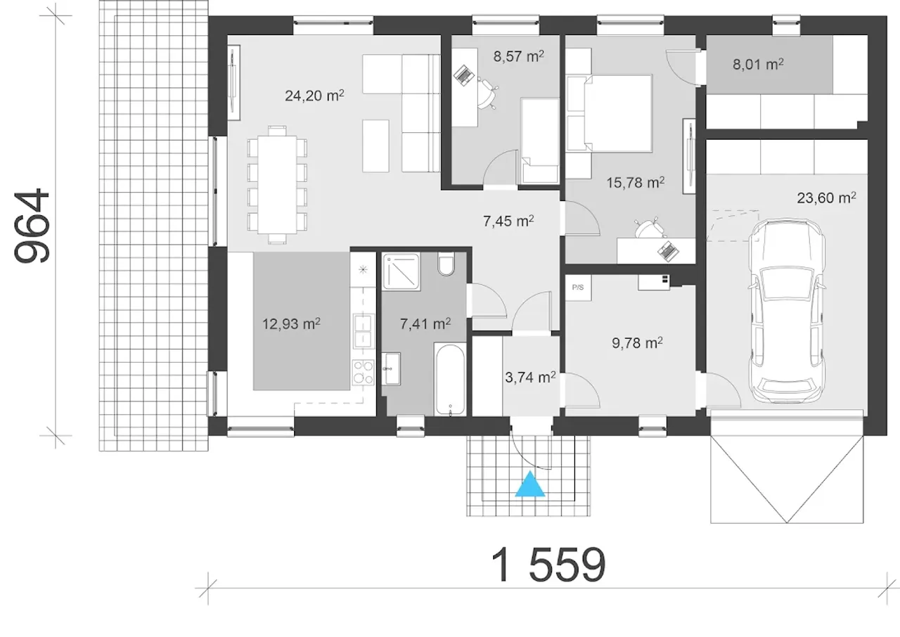 Wypełnij formularz i otrzymaj rysunki w pdf z dokładnymi wymiarami budynku i pomieszczeń (długość, szerokość, wysokość) dla projektu uA177