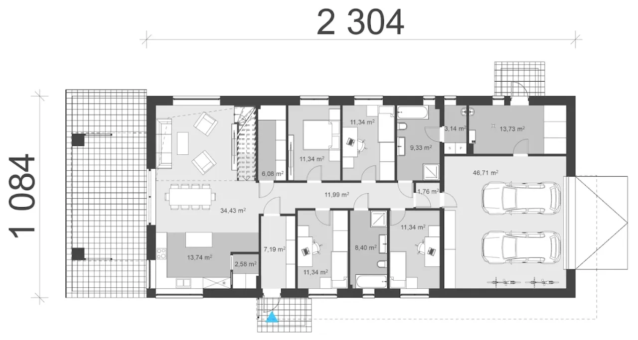 5. Pokój dzienny + jadalnia | 34,43 m² |