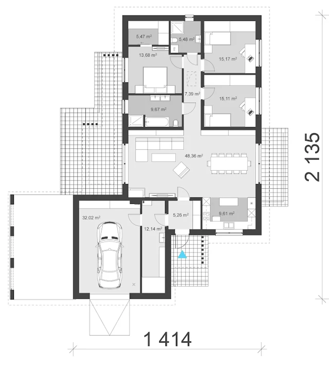 Wypełnij formularz i otrzymaj rysunki w pdf z dokładnymi wymiarami budynku i pomieszczeń (długość, szerokość, wysokość) dla projektu UA214