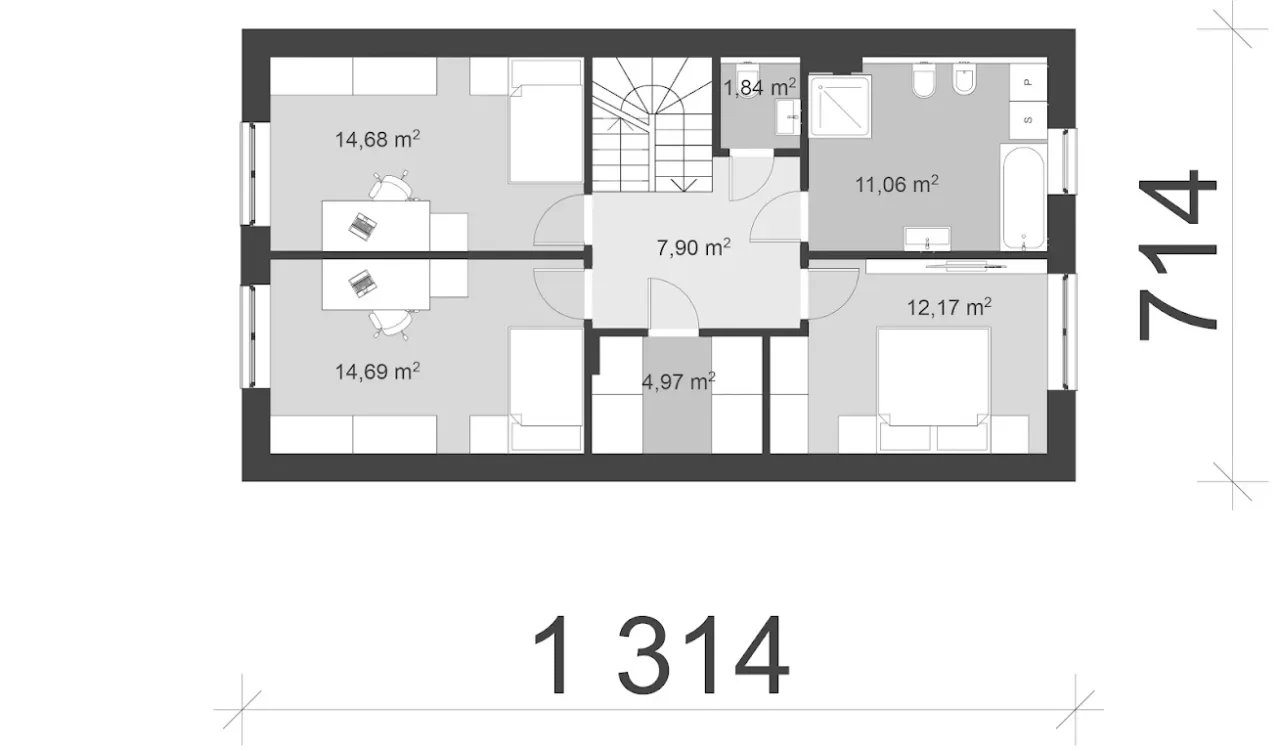 Wypełnij formularz i otrzymaj rysunki w pdf z dokładnymi wymiarami budynku i pomieszczeń (długość, szerokość, wysokość) dla projektu UA238