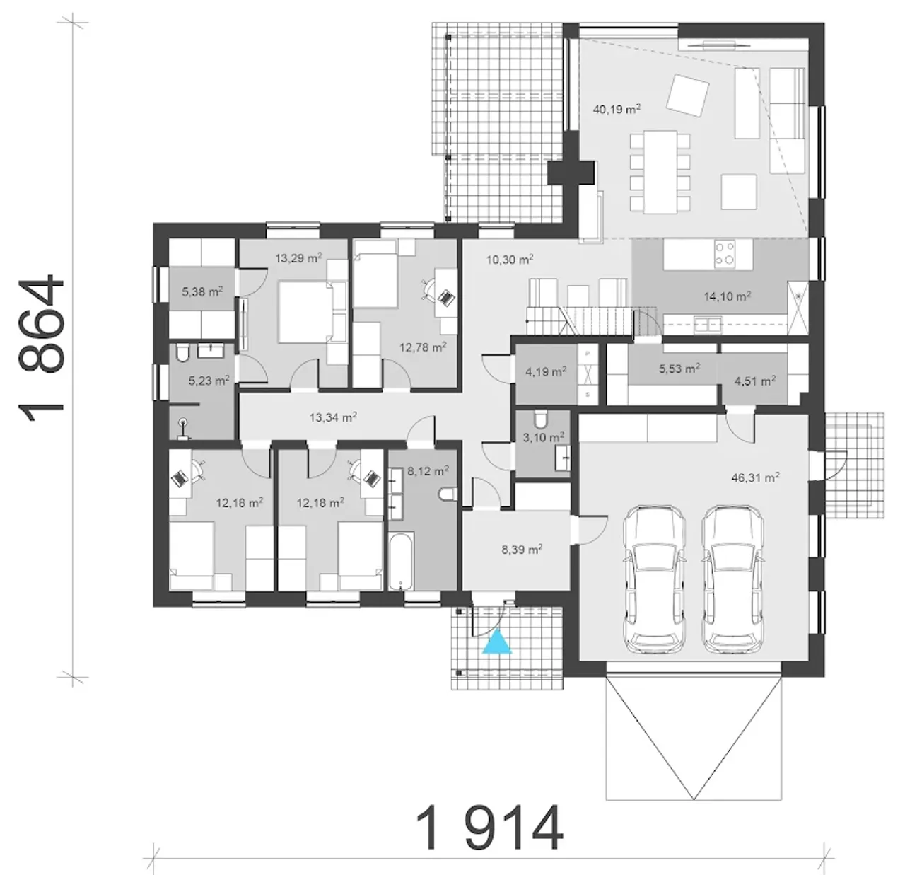 13. Pokój dzienny + jadalnia | 40,19 m² |