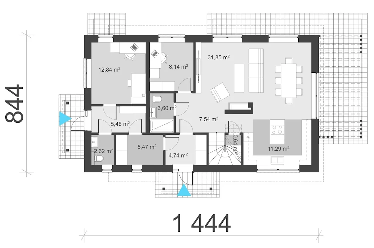5. Pokój dzienny z jadalnią | 31,85 m² |
