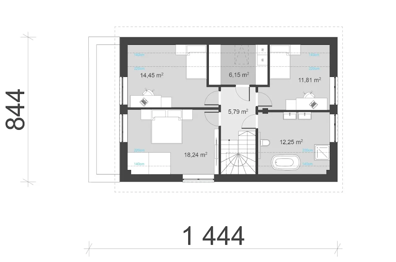Szerokość budynku 14.44 m |