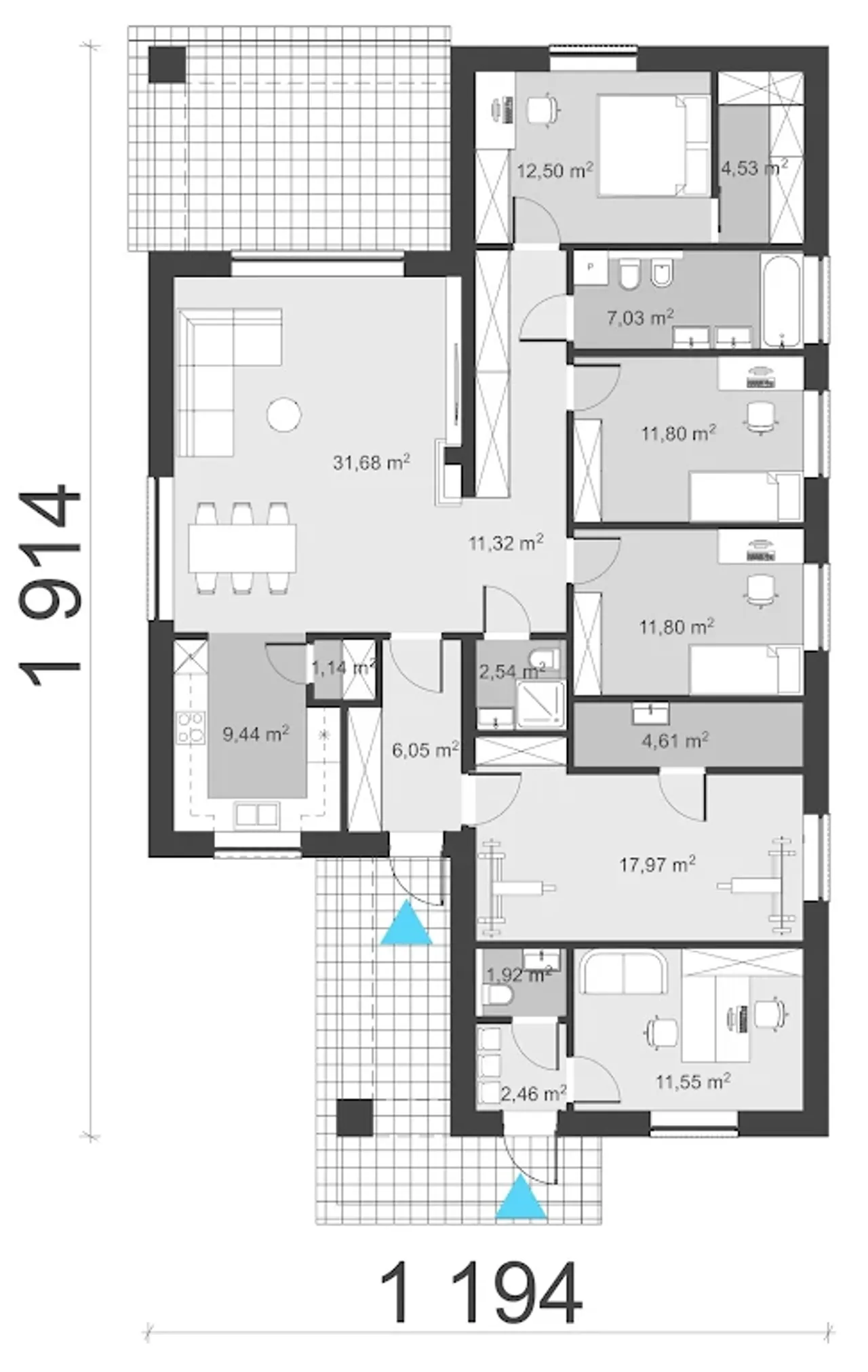 4. Pokój dzienny + jadalnia | 31,68 m² |