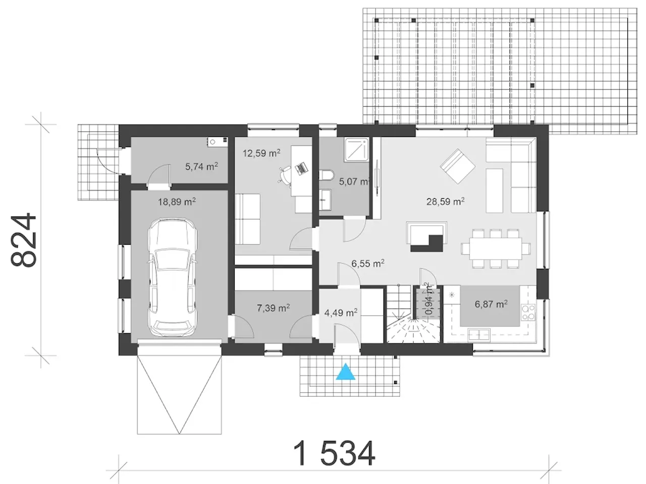 5. Pokój dzienny + jadalnia | 28,59 m² |