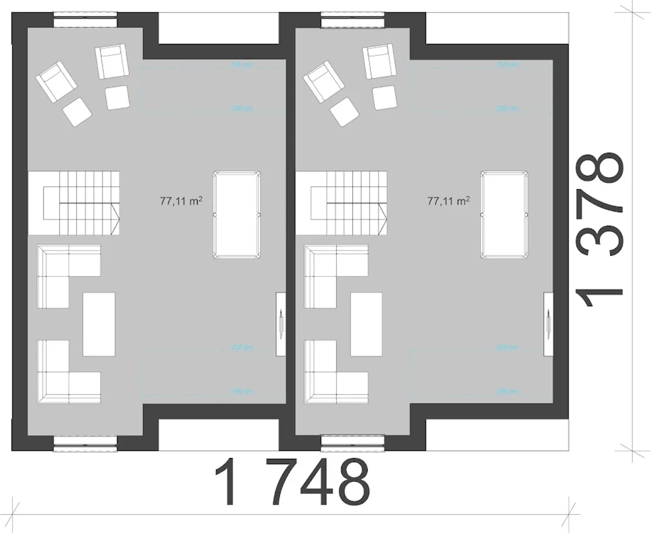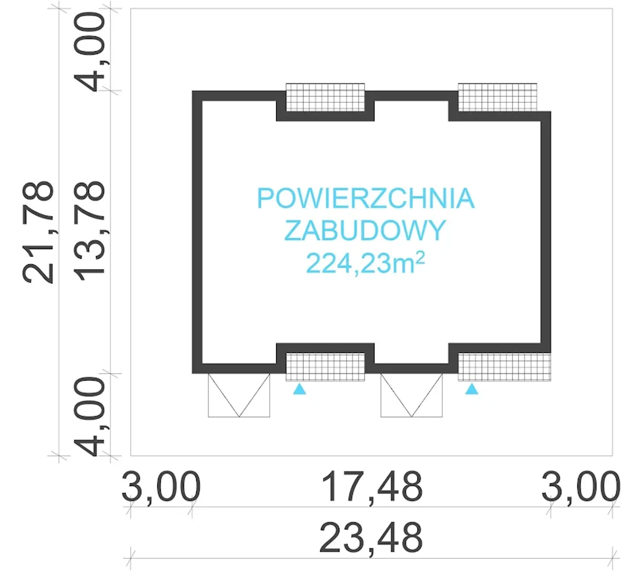 Wypełnij formularz i otrzymaj rysunki w pdf z dokładnymi wymiarami budynku i pomieszczeń (długość, szerokość, wysokość) dla projektu UA374
