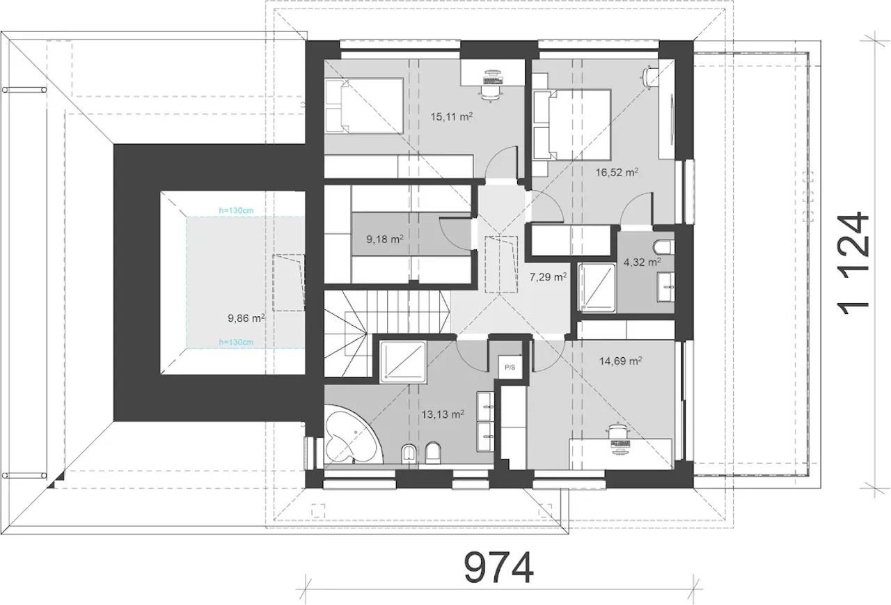 - Zmiany wysokości ścianki kolankowej.