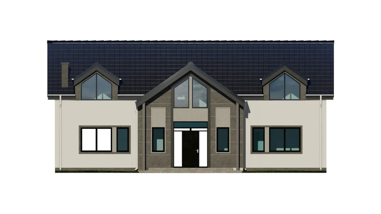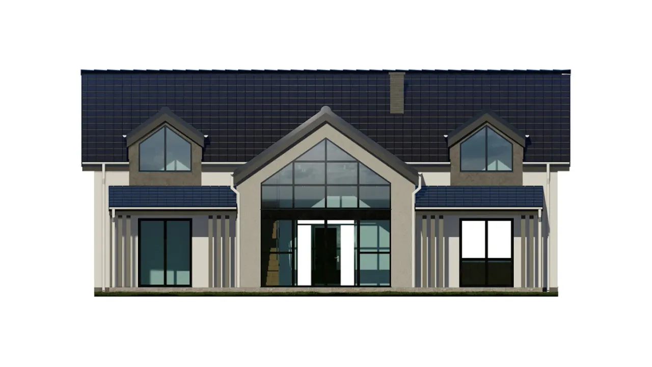 Projekt domu UA424 to nowoczesny, murowany dom jednorodzinny z poddaszem, przeznaczony do całorocznego użytkowania, stworzony z myślą o rodzinach poszukujących funkcjonalnej przestrzeni na lata. Klasyczna bryła z wielospadowym dachem i kalenicą równoległą do drogi nadaje budynkowi elegancki, aktualny wizualnie charakter, a zarazem ułatwia wkomponowanie w zabudowę podmiejską lub wiejską.