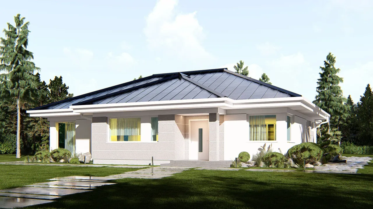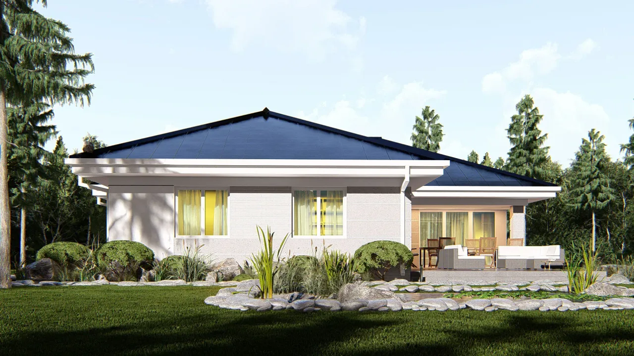 Dom wybudowany na podstawie projektu UA442 będzie solidnym, tradycyjnym domem murowanym, dopasowanym do polskich realiów klimatycznych i budowlanych. Inwestorzy szukający parterowego, całorocznego domu jednorodzinnego otrzymują spójną koncepcję budynku, który łączy prostotę konstrukcji z funkcjonalnym układem pomieszczeń i klasycznym, ponadczasowym wyglądem.