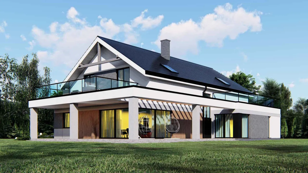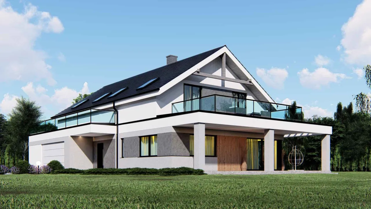 - Nowoczesna bryła: Elegancki dom jednorodzinny dobrze prezentujący się na różnych typach działek.