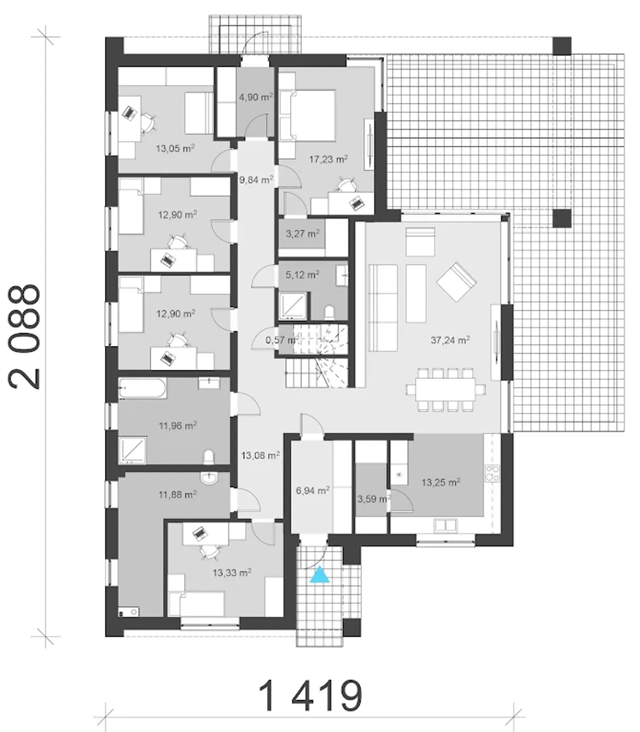 Wypełnij formularz i otrzymaj rysunki w pdf z dokładnymi wymiarami budynku i pomieszczeń (długość, szerokość, wysokość) dla projektu UA46v8