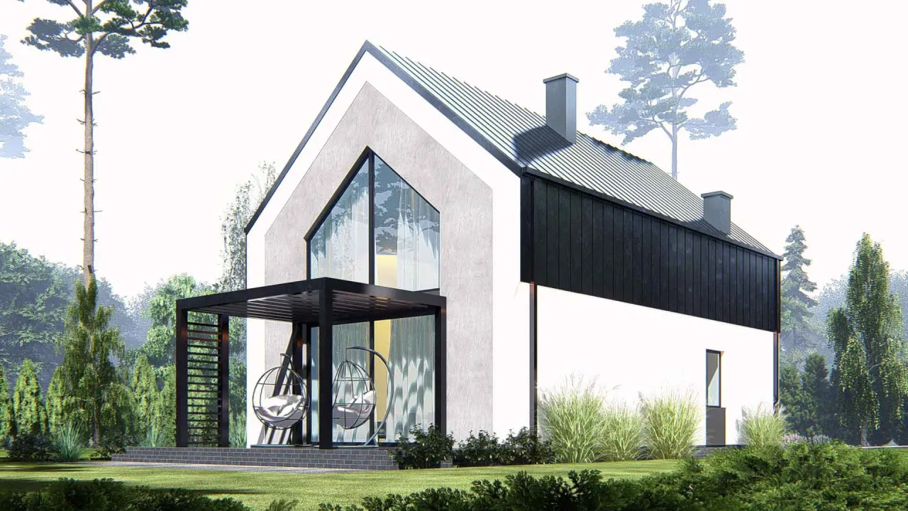 - Nowoczesny dach dwuspadowy 35°: Umiarkowany kąt nachylenia ułatwia montaż pokrycia i instalacji fotowoltaicznej oraz optymalizuje koszty budowy.
