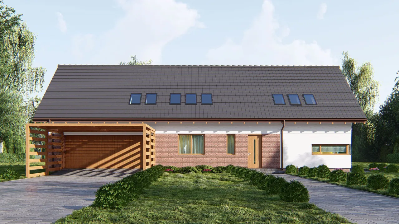 Projekt domu UA76v11 urzeka swoją elegancją i nowoczesnym stylem. Przestrzeń wyróżnia się otwartością, a fasada prezentuje się znakomicie. Wejście jest zarówno zapraszające, jak i imponujące. Duże okna zapewniają obfitość światła wewnątrz. Układ pokoi został starannie zaplanowany, a każdy z nich ma swój niepowtarzalny charakter. Dach cechuje się wyjątkowym urokiem, a materiały wydają się być najwyższej jakości. Uważam, że ten projekt to znakomita opcja. Serio rozważam zakup projektu i budowę tego domu.