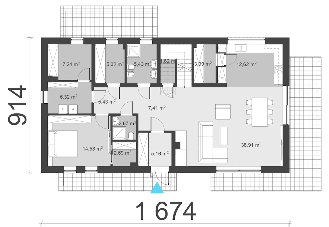 3. Pokój dzienny + jadalnia | 38,91 m² |