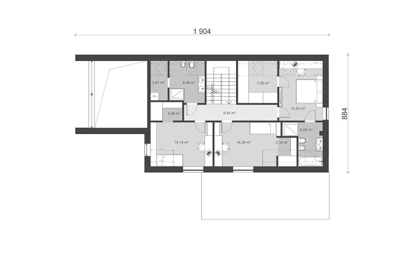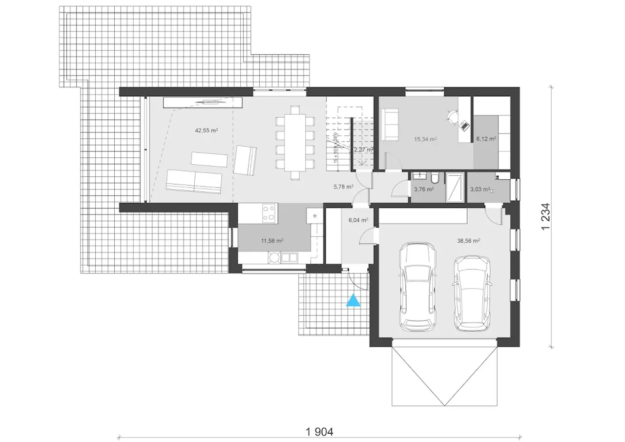 3. Pokój dzienny + jadalnia | 42,55 m² |