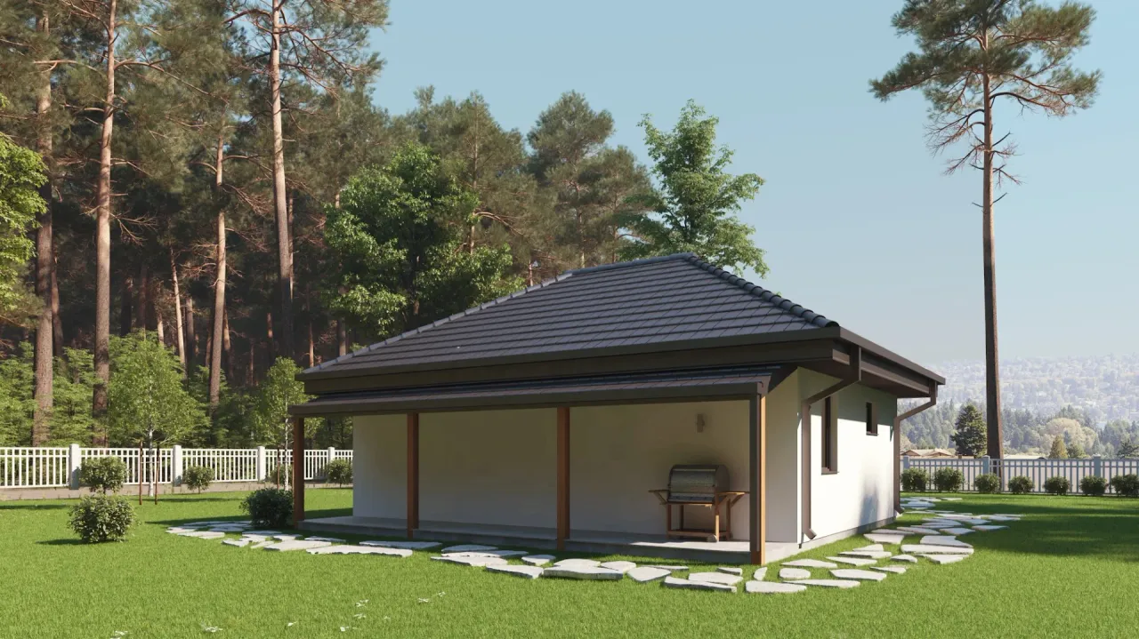 | Przestrzeń z pom. gospodarczym, z wiatą/altaną |