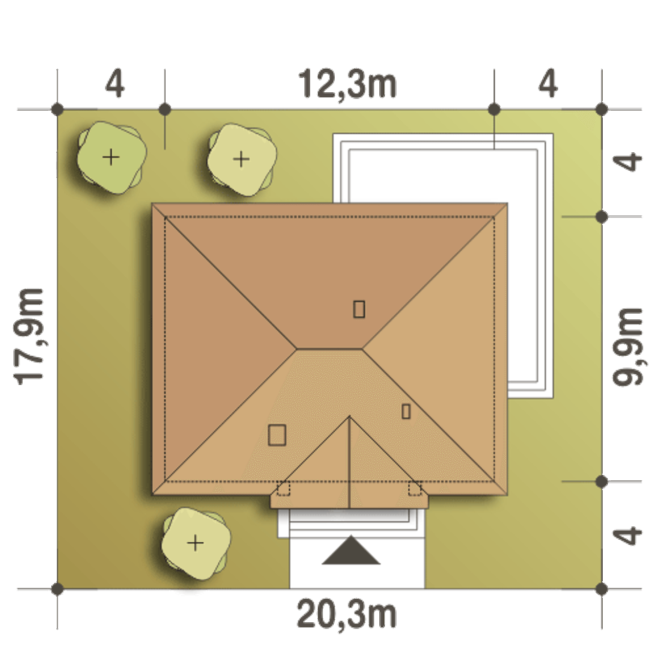 Wypełnij formularz i otrzymaj rysunki w pdf z dokładnymi wymiarami budynku i pomieszczeń (długość, szerokość, wysokość) dla projektu Łucja II bez garażu B