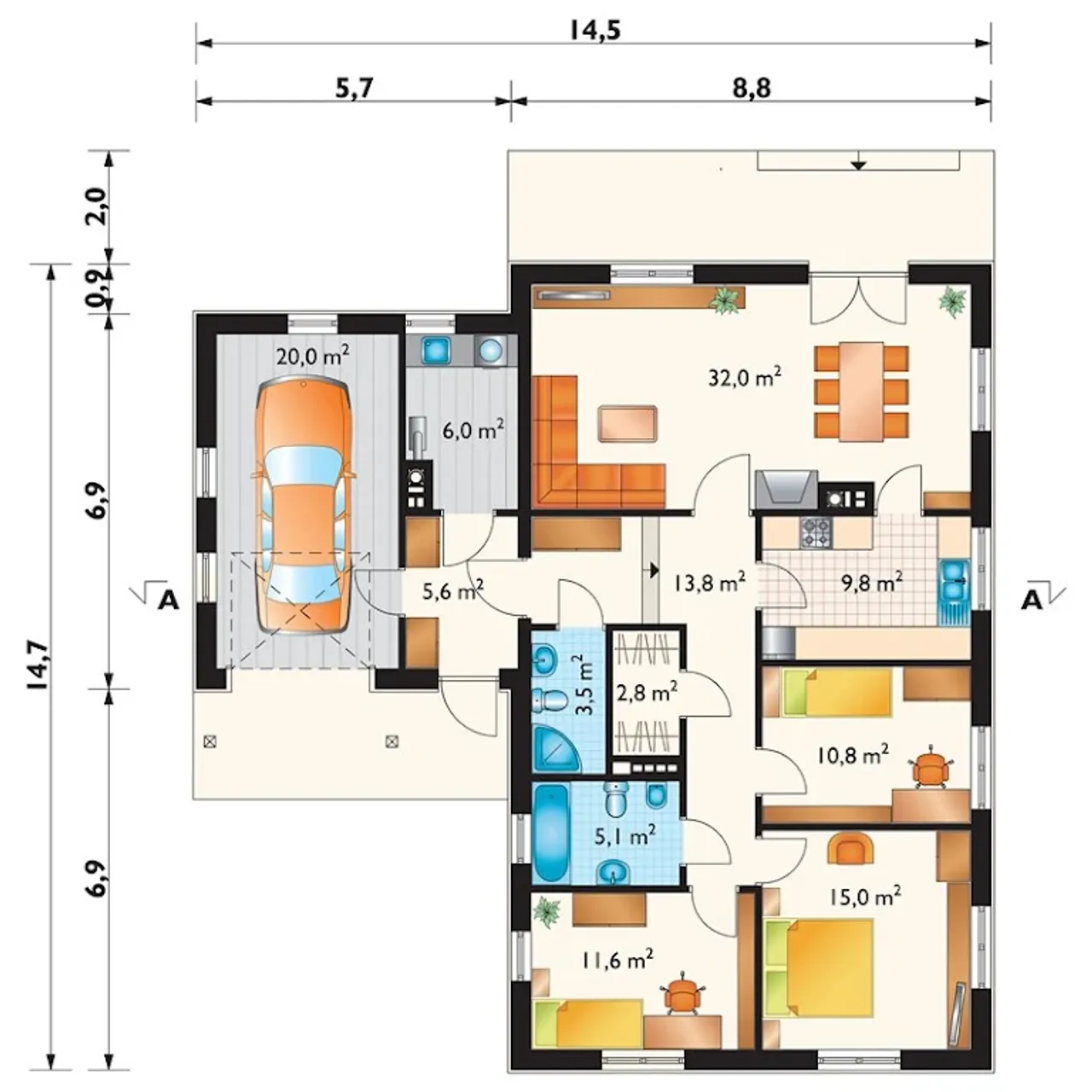 Wypełnij formularz i otrzymaj rysunki w pdf z dokładnymi wymiarami budynku i pomieszczeń (długość, szerokość, wysokość) dla projektu Żuczek As