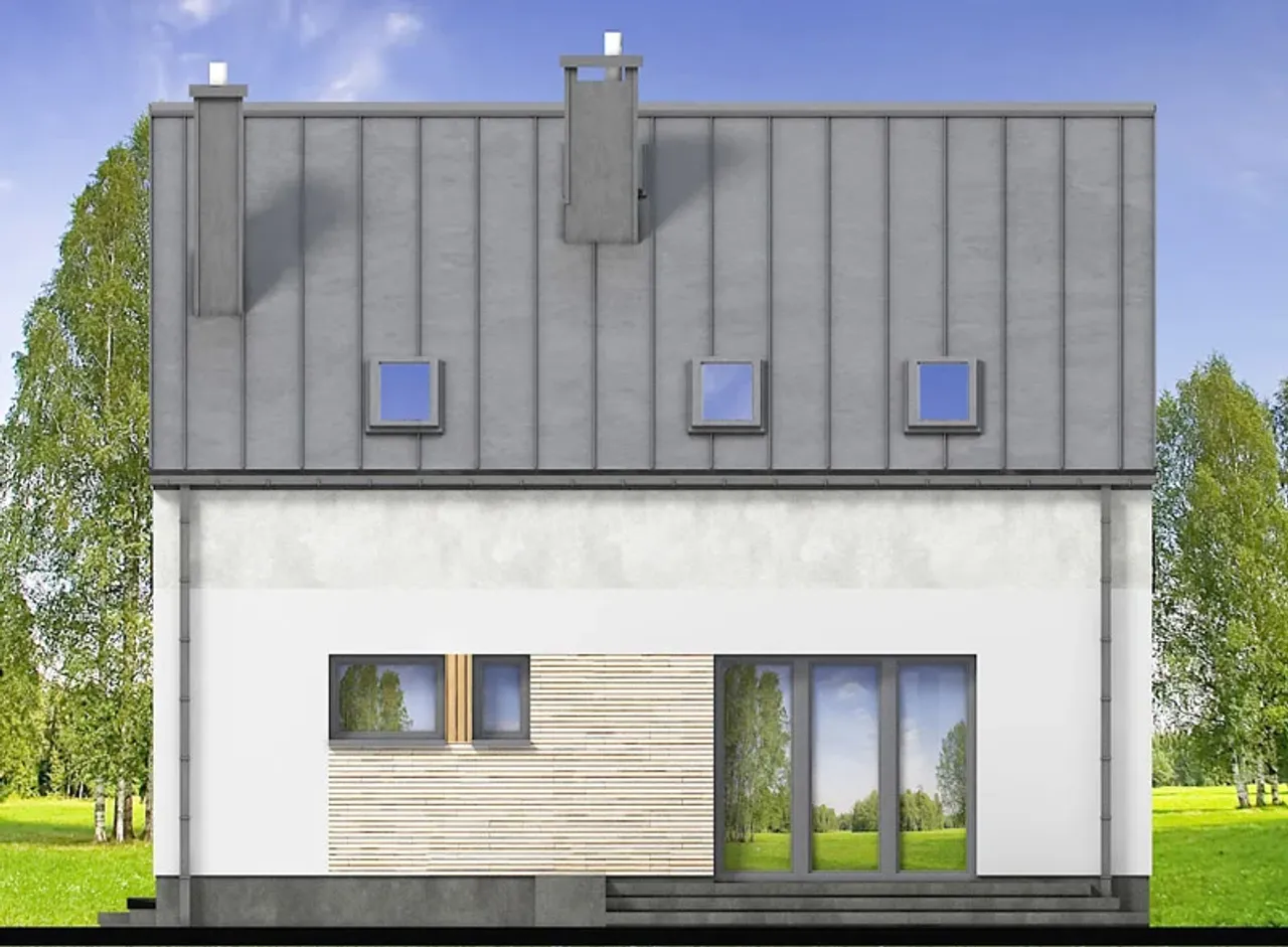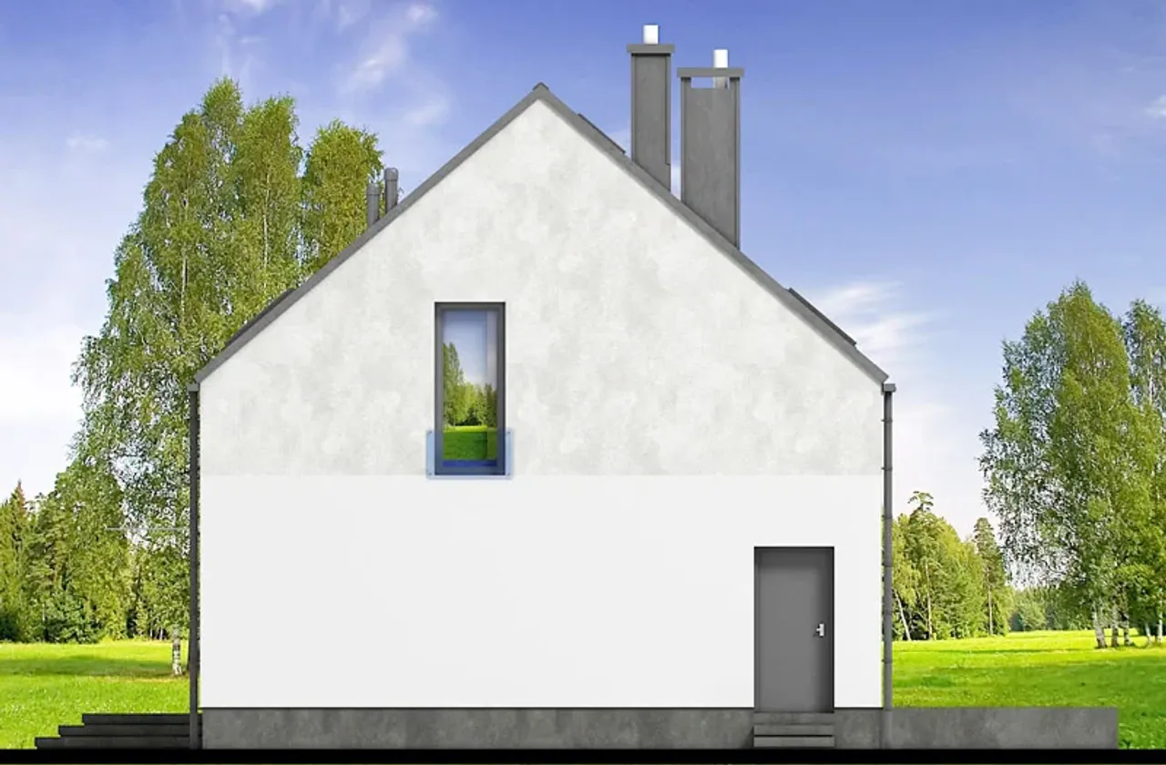 Dom wybudowany na podstawie tego projektu zachwyci solidnością dzięki żelbetowym fundamentom i ścianom z pustaków ceramicznych. Konstrukcja dachu wykonana z drewna umożliwia wybór preferowanego pokrycia: klasycznej dachówki ceramicznej, lekkiej blachy lub betonowej dachówki dla osób szukających trwałości. Monolityczny strop podnosi poczucie bezpieczeństwa, a brak piwnicy korzystnie wpływa na tempo realizacji inwestycji oraz optymalizację wydatków. Równoległa kalenica względem drogi ułatwia lokalizację budynku na działce i daje wiele możliwości aranżacyjnych.