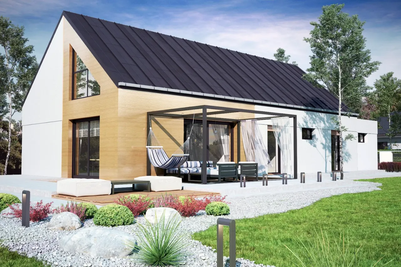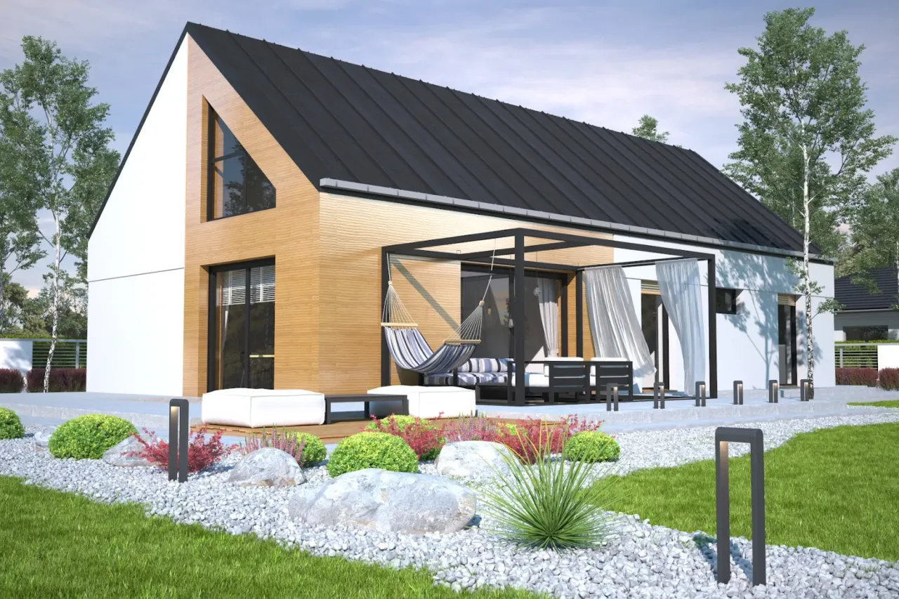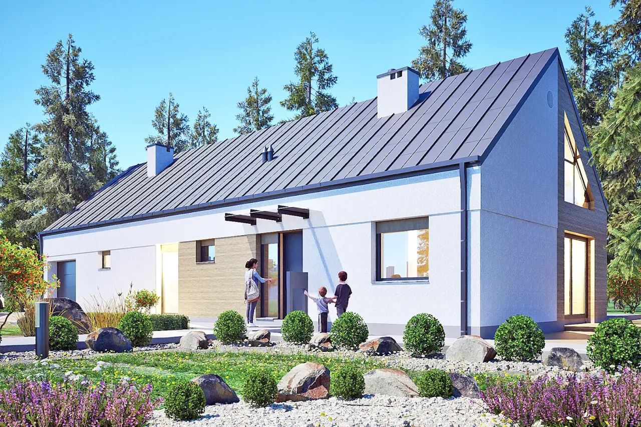 Projekt domu Żurawinka II z garażem 1-st. A2 to prawdziwa perła wśród domów jednorodzinnych. Jego elegancka i nowoczesna bryła, połączona z funkcjonalnością pomieszczeń, sprawia, że każdego dnia można cieszyć się wygodą i przestrzenią, które znakomicie wpisują się w potrzeby współczesnej rodziny. Wyrafinowane połączenie materiałów wykończeniowych dodaje elewacji wyjątkowego charakteru, a przemyślane rozmieszczenie okien zapewnia doskonałe doświetlenie wnętrz. Co więcej, zintegrowany z bryłą domu garaż stanowi nie tylko praktyczne, ale i estetyczne rozwiązanie, podkreślające nowoczesność projektu. Żurawinka II to dom, w którym każda rodzina poczuje, że znalazła swoje wymarzone miejsce na Ziemi.