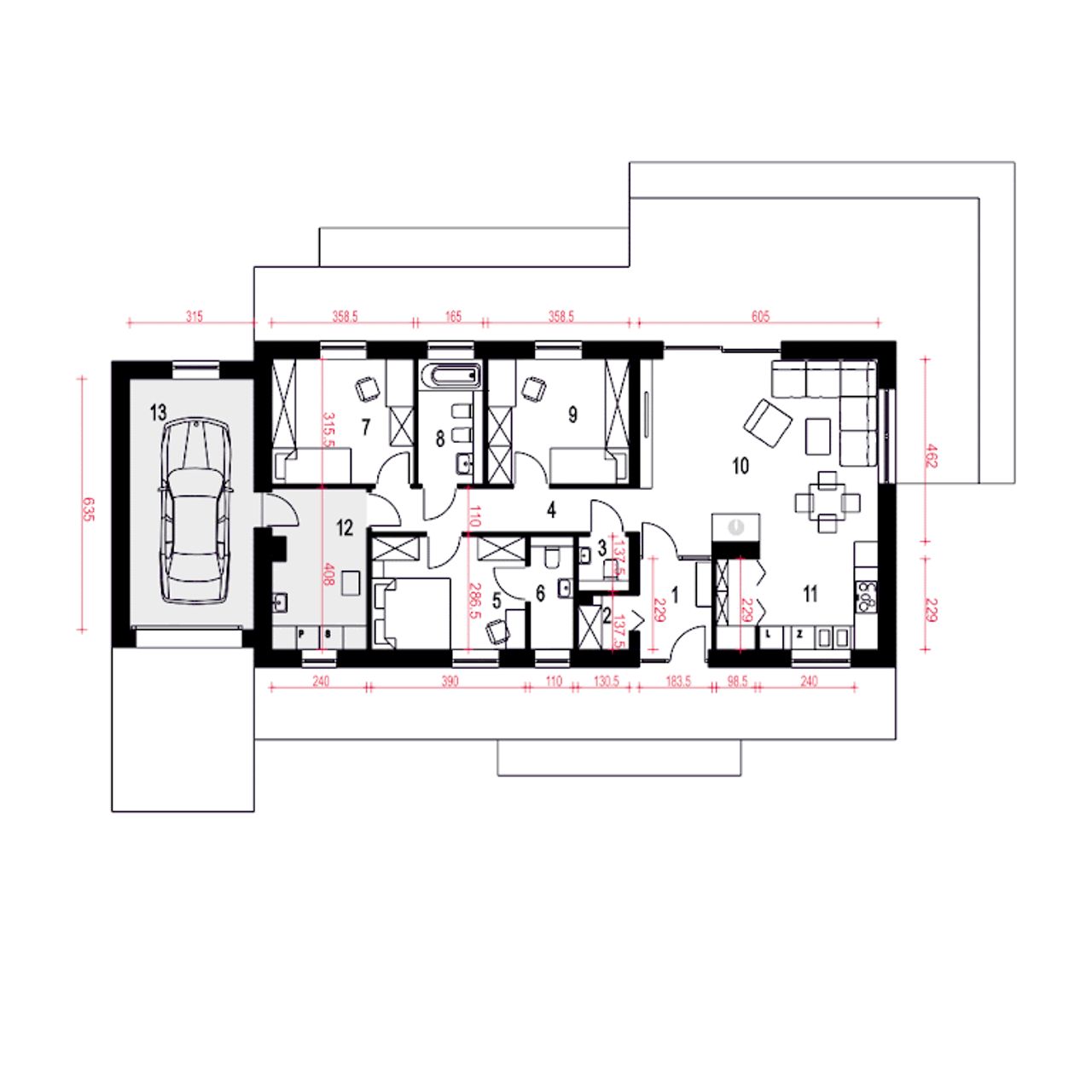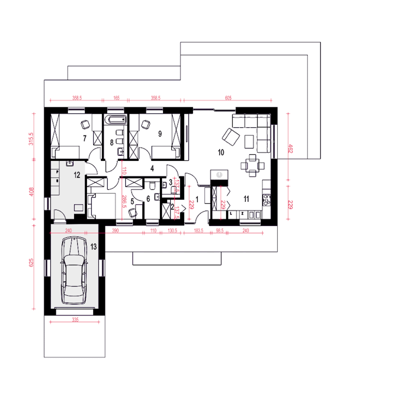 Wypełnij formularz i otrzymaj rysunki w pdf z dokładnymi wymiarami budynku i pomieszczeń (długość, szerokość, wysokość) dla projektu Żurawinka II z garażem 1-st. A2
