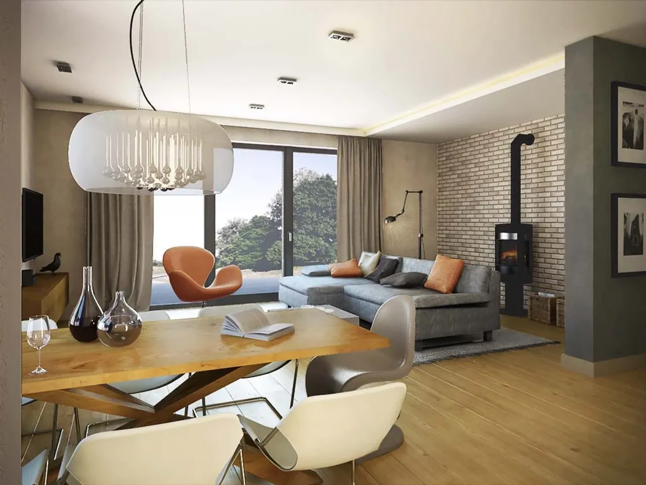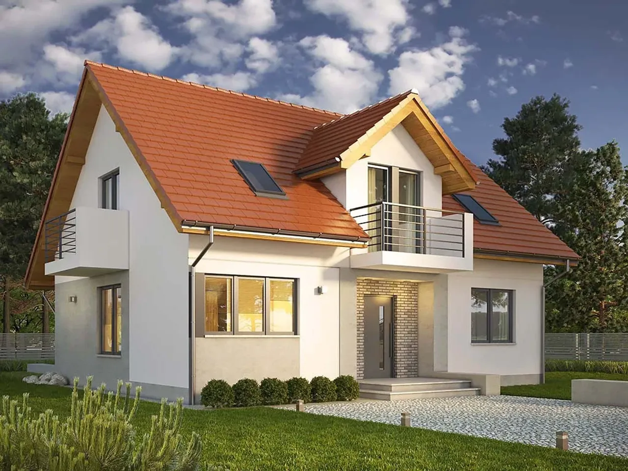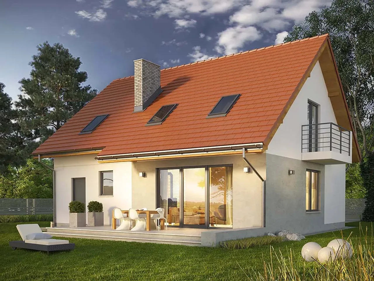 Projekt Venus to nowoczesny dom jednorodzinny z poddaszem, który cechuje się niskimi kosztami realizacji i utrzymania. W jego funkcjonalnym układzie znajdziemy salon z kominkiem, zamkniętą kuchnię z podwójnymi, skrzydłowymi drzwiami oraz dodatkowy pokój na parterze. Na poddaszu zaplanowano trzy komfortowe sypialnie. Na każdej kondygnacji zaplanowano łazienkę, z większą łazienką na górze. Dom nie posiada garażu, a przykładowa aranżacja wnętrza została przedstawiona na wizualizacjach. Dokumentacja dostępna jest także w wersji odbicia lustrzanego.