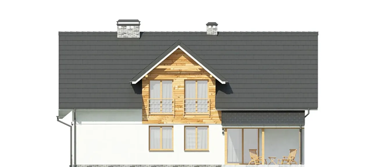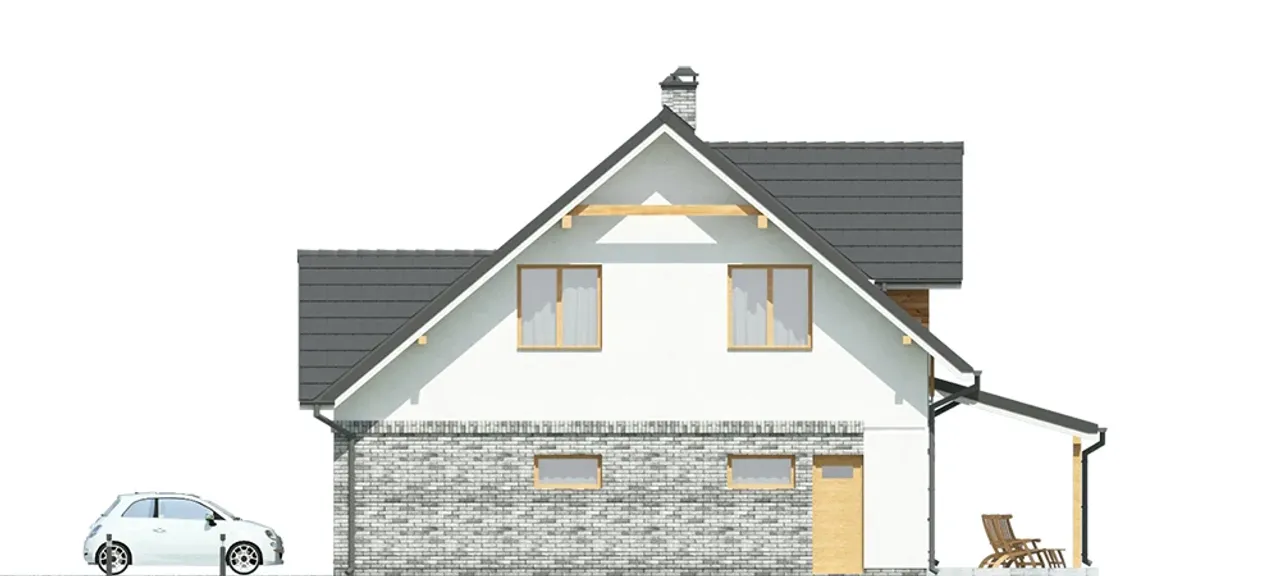 Projekt domu jednorodzinnego Vilis I G1 prezentuje nowoczesne podejście do architektury połączone z funkcjonalnością potrzebną na co dzień. Dwuspadowy dach o kącie nachylenia 40° oraz elegancka lukarna przyciągają wzrok, podkreślając nowoczesną sylwetkę budynku. Konstrukcja bazuje na płycie żelbetowej oraz ścianie kolankowej wysokiej na 112 cm, co pozwala w pełni zagospodarować poddasze. Zastosowanie okien i drzwi PVC oraz segmentowej bramy garażowej podnosi standard użytkowania oraz ułatwia konserwację. Budowa oparta o system ścian XELLA YTONG znakomicie izoluje termicznie i sprzyja zdrowemu mikroklimatowi wewnętrznemu. Kominek staje się sercem salonu - doskonałym miejscem relaksu i integracji. Pralnia pozwala zachować ład i wygodę w organizacji codziennych obowiązków. W domu Vilis I G1 wyraźnie wydzielono strefę dzienną i nocną, a pięć pokoi daje swobodę aranżacji pokoju dziecięcego, gabinetu czy sypialni dla gości. Strop żelbetowy oraz dwubiegowe, solidne schody gwarantują stabilność i bezpieczeństwo wszystkich domowników przez wiele lat.
