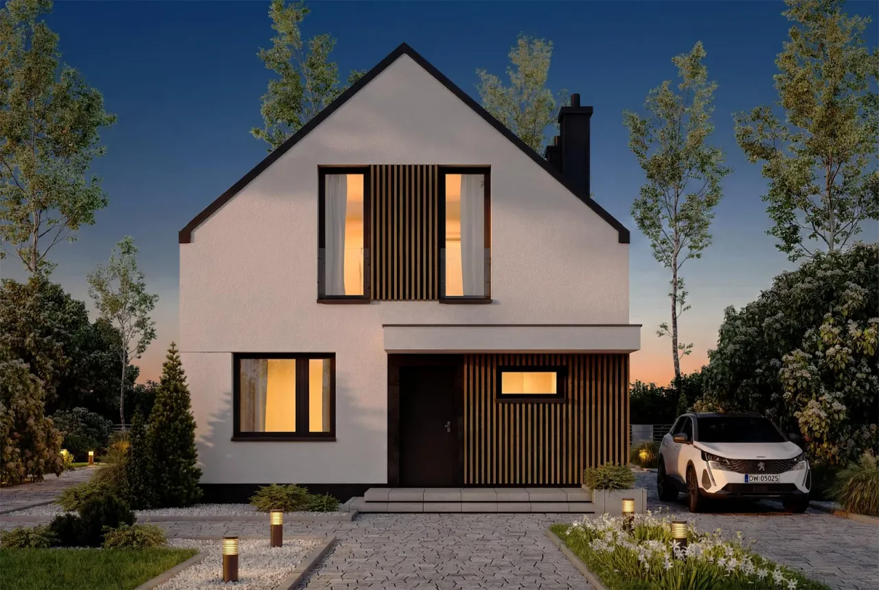 - Pokrycie dachu: dachówką betonową lub ceramiczną.
