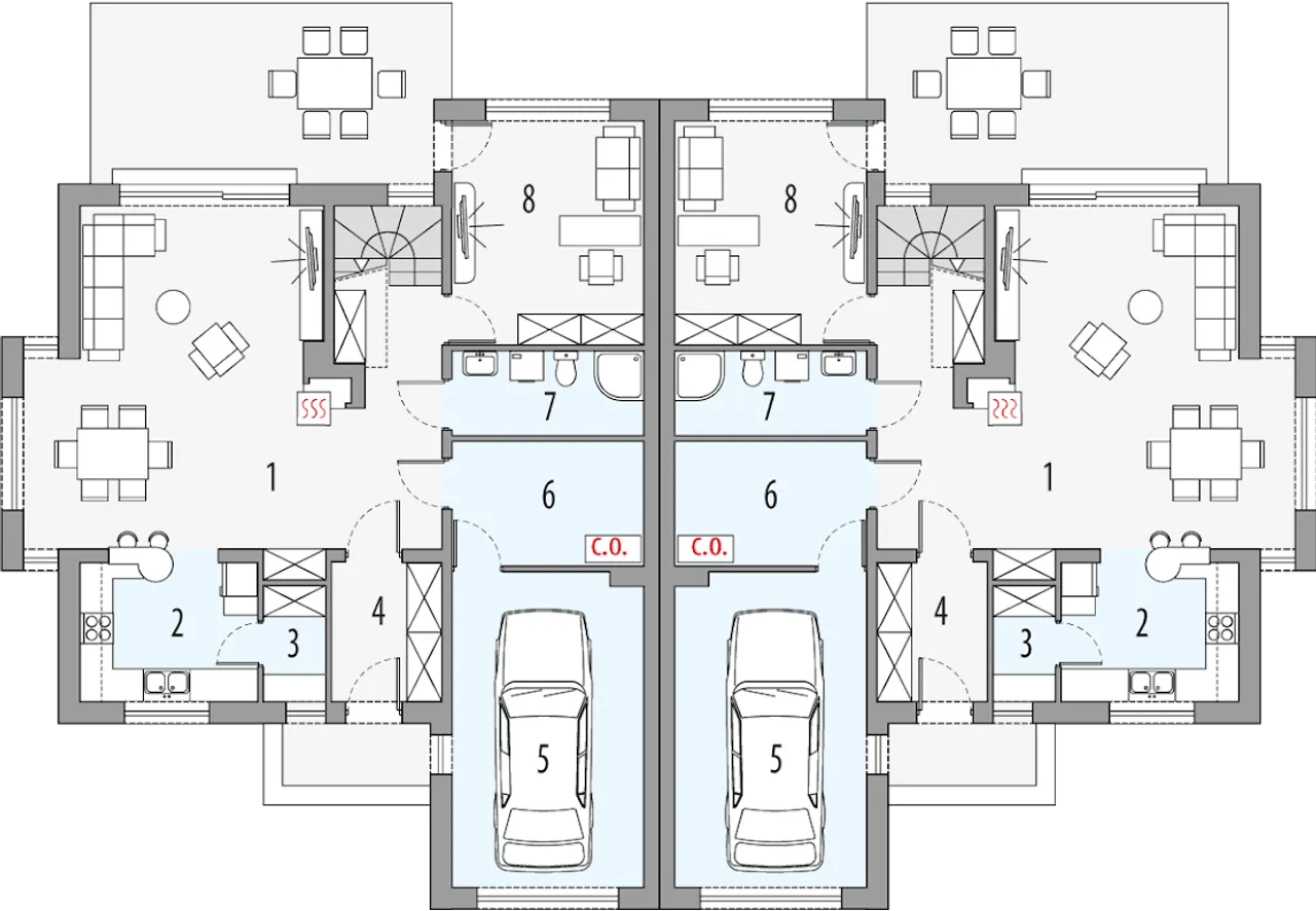 Rzuty gotowego projektu domu Vivien B - bliźniak PL.P