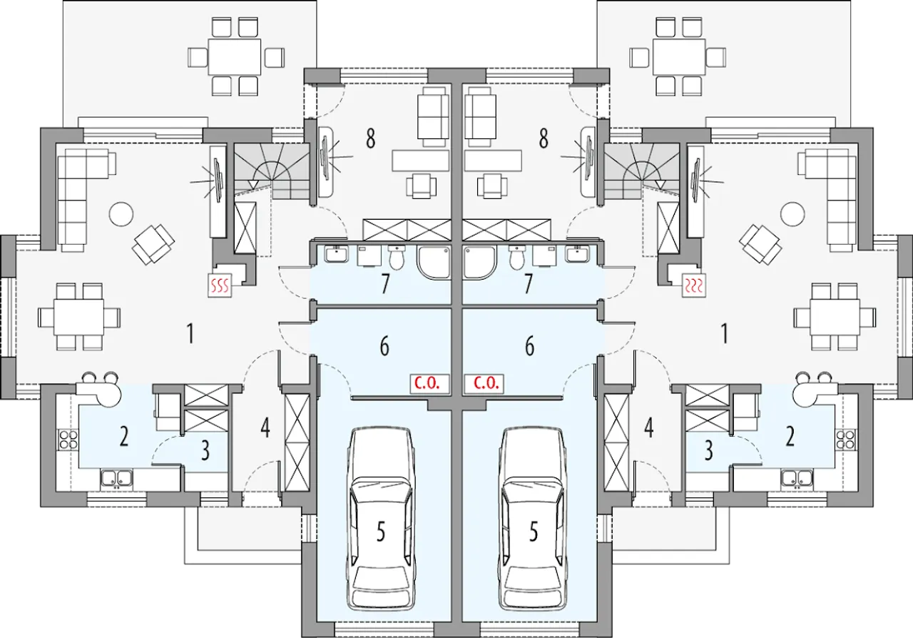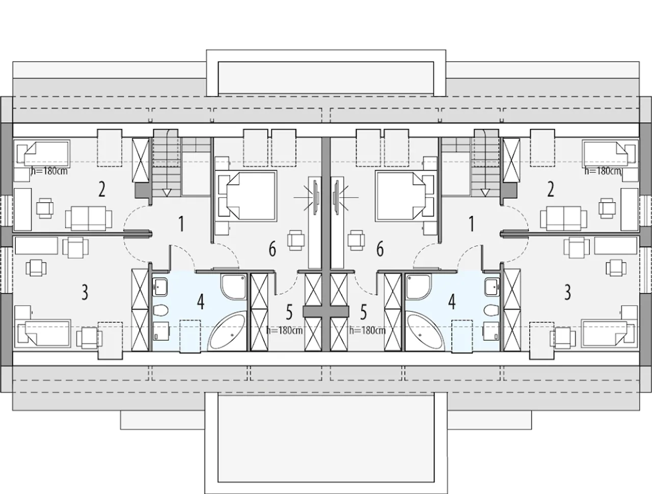 Rzuty gotowego projektu domu Vivien B - dwulokalowy PL.P