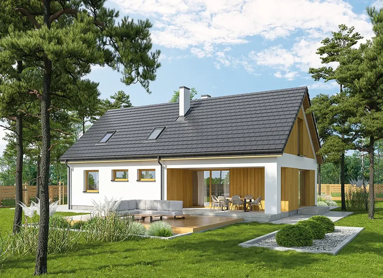 Kupując projekt w technologii murowanej powinieneś budować dom murowany. Zupełna zmiana technologii na szkieletową wymaga przeprojektowania całego budynku ( zmieniają się obciążenia, fundamenty, konstrukcja dachu). Wydamy zgodę na takie przeprojektowanie jednak wiążę się to z dużymi kosztami. Istnieją firmy wykonawcze, które podejmują się zmiany technologii budowy bezpłatnie przy skorzystaniu z ich usług wykonawczych. Zdarza się, że pracownia architektoniczna przygotowuje warianty konkretnego projektu przewidując także inne technologie. Prosimy o sprawdzenie czy istnieje poszukiwana wersja projektu, w zakładce - warianty projektu.