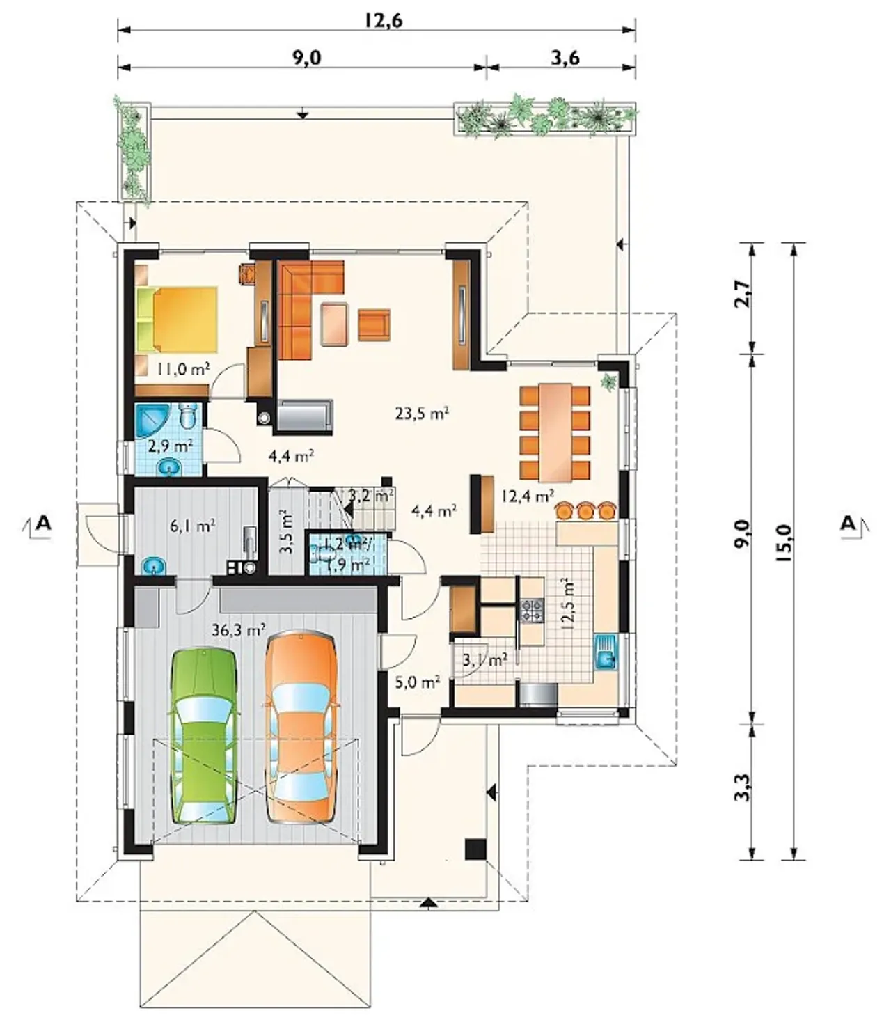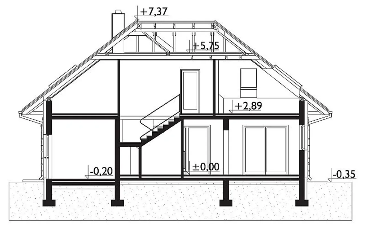 - przekroje - pokazują wszystkie elementy budynku po przecięciu go wzdłuż lub w poprzek od dachu do fundamentów tj. warstwy podłogi, stropów i dachu