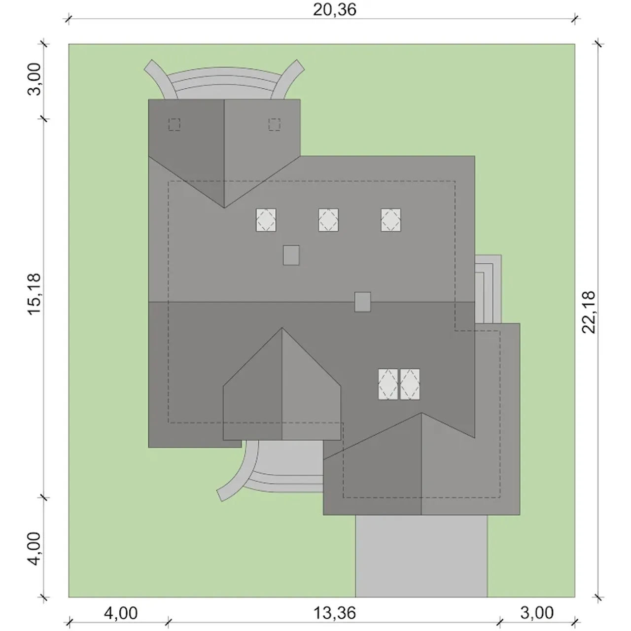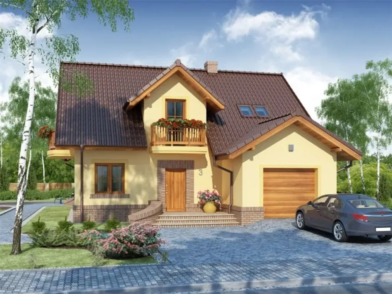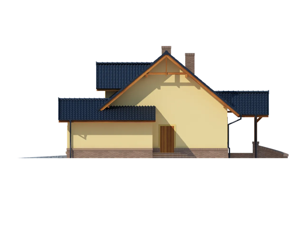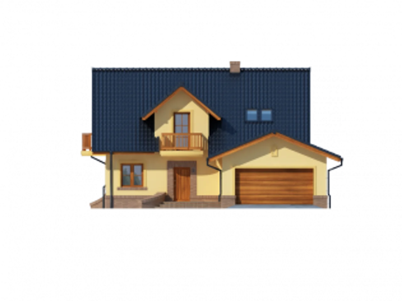 Projekt domu Wera 2 PS to parterowy dom z poddaszem pokryty dachem dwuspadowym, budynek posiada niewielkie gabaryty dzięki czemu inwestycje można realizować również na mniejszych działkach. Od strony frontowej znajdują się zadaszone drzwi frontowe ozdobione niskim murkiem, tuż obok umieszczono wjazd do garażu dwustanowiskowego . W projekcie domu Wera 2 PS znajdziemy jasny salon z jadalnią, z którego mamy dostęp do niezadaszonego tarasu.