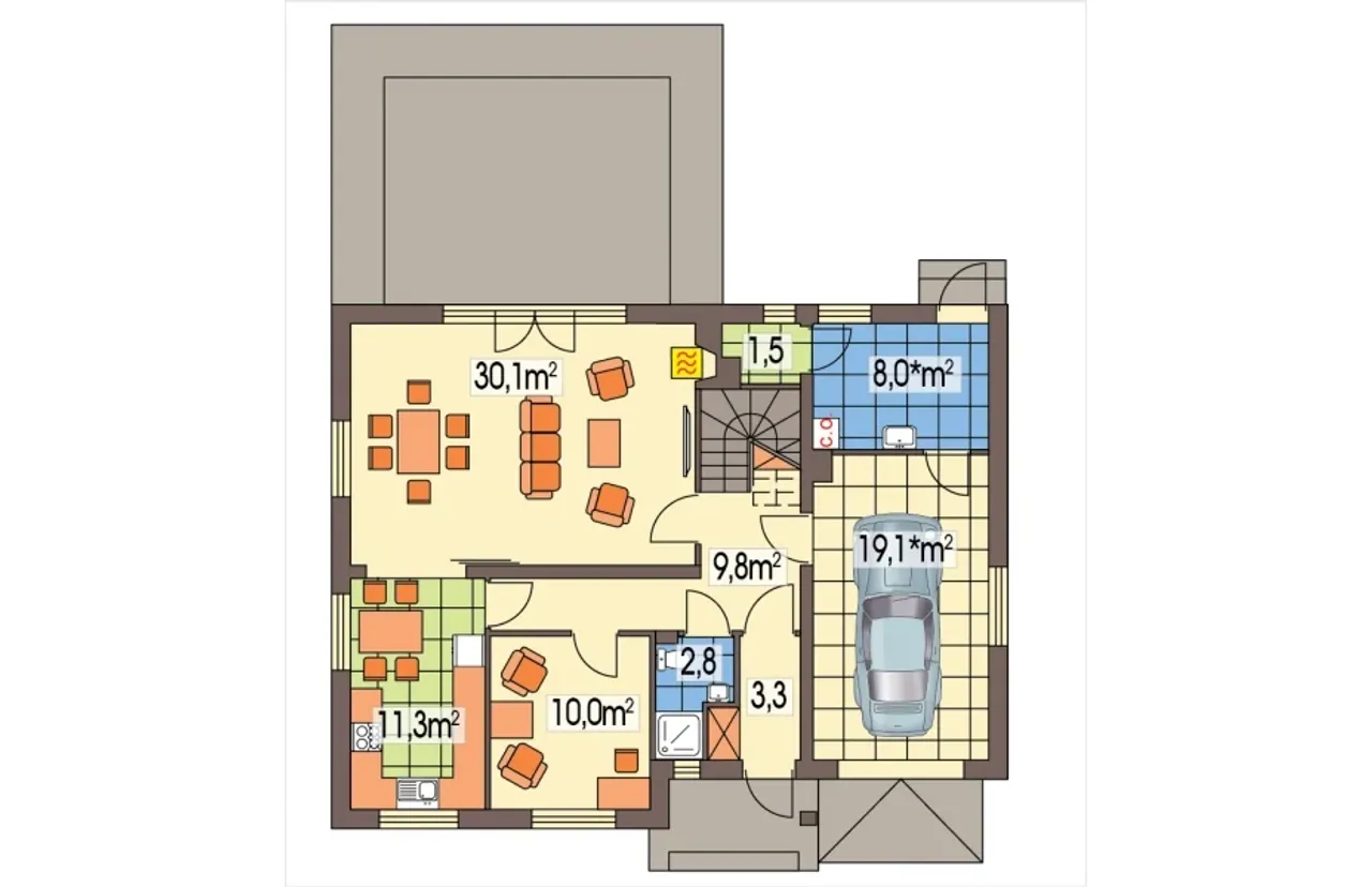 Wypełnij formularz i otrzymaj rysunki w pdf z dokładnymi wymiarami budynku i pomieszczeń (długość, szerokość, wysokość) dla projektu Werbena Nova wersja A z pojedynczym garażem