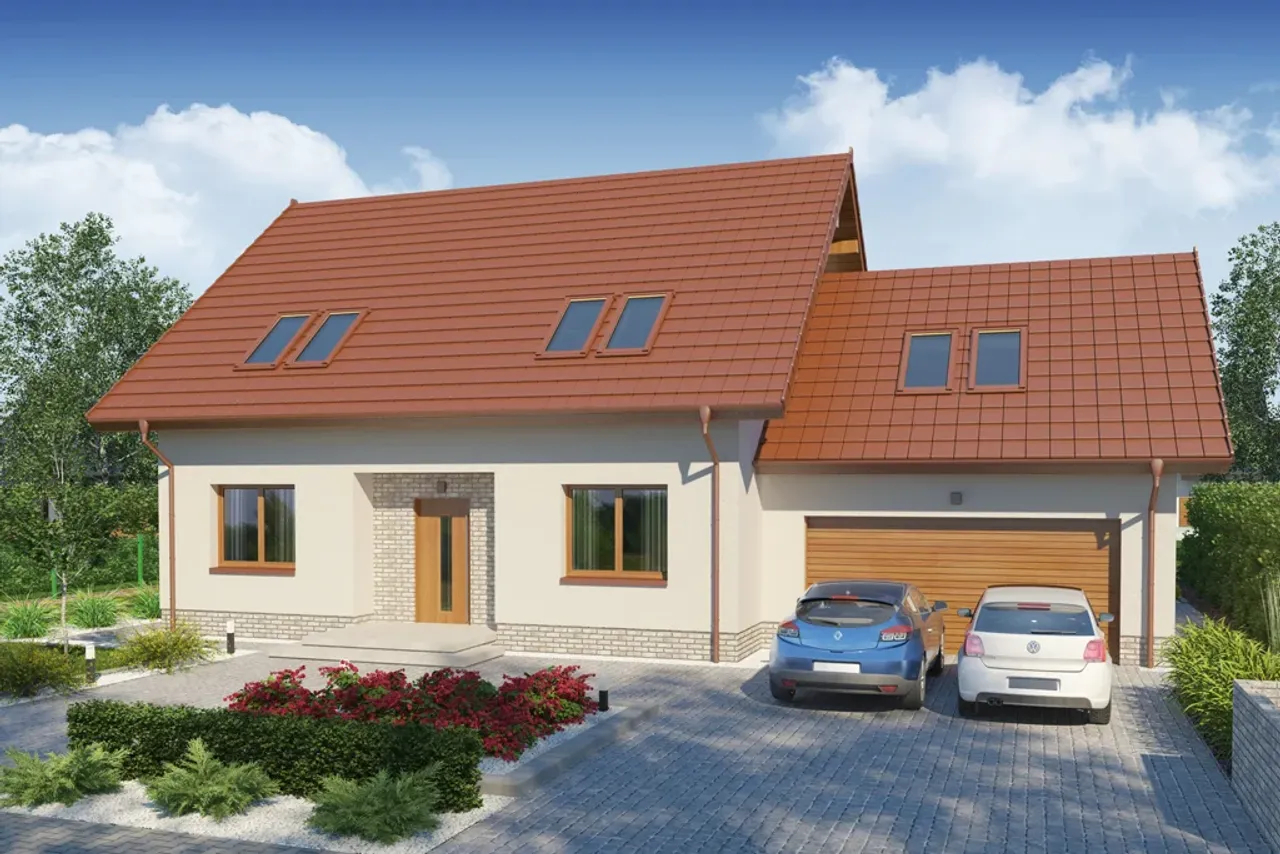 Gotowy projekt domu WERGILIUSZ 2 PS to średniej wielkości klasyczny dom parterowy z poddaszem użytkowym przeznaczony dla 4-5 osobowej rodziny. Jeżeli na początkowym bądź późniejszym etapie inwestorzy zdecydują się na zagospodarowanie strychu, dom może swobodnie pomieścić nawet 7 osób.