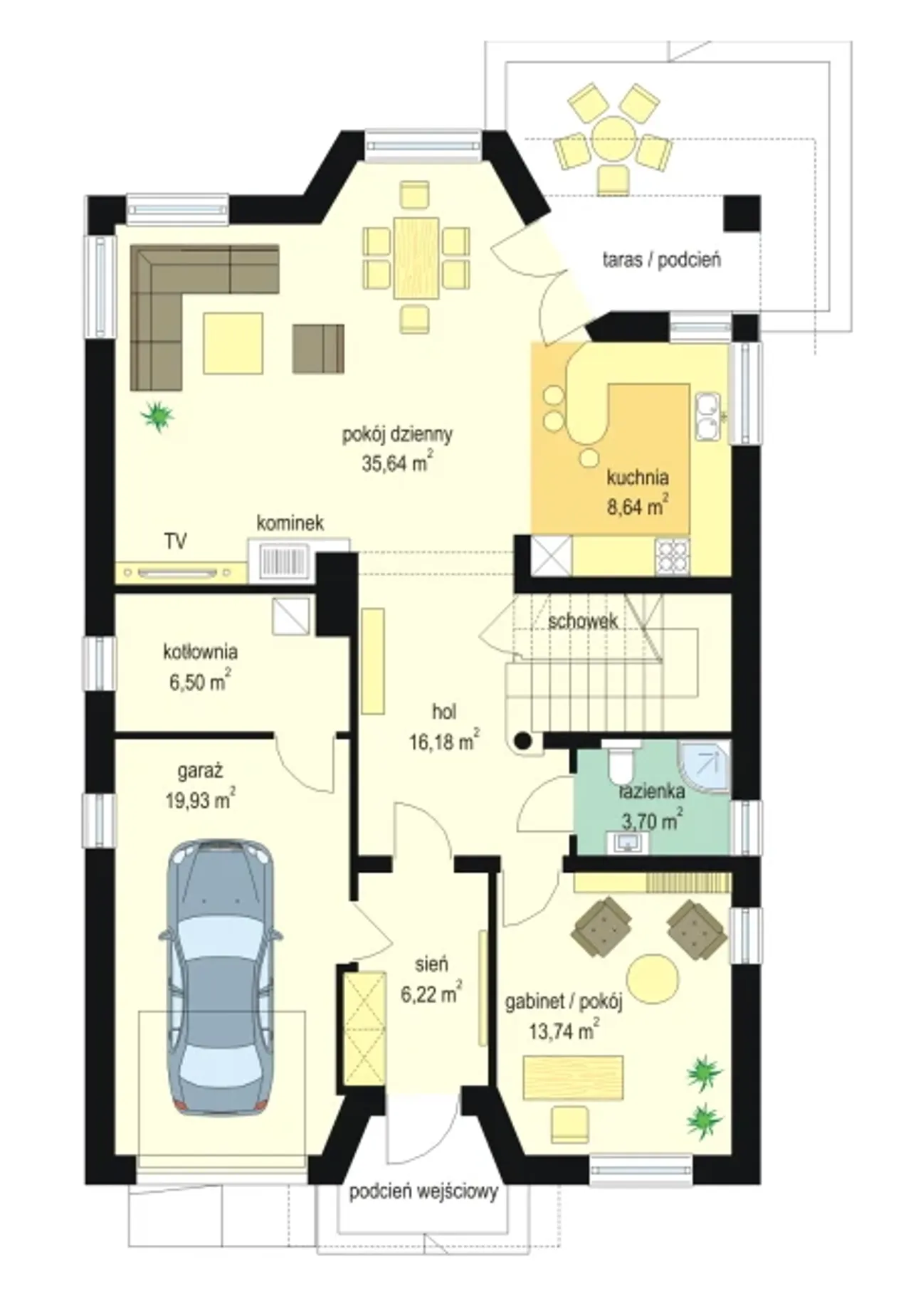 Kupując projekt w technologii murowanej powinieneś budować dom murowany. Zupełna zmiana technologii na szkieletową wymaga przeprojektowania całego budynku ( zmieniają się obciążenia, fundamenty, konstrukcja dachu). Wydamy zgodę na takie przeprojektowanie jednak wiążę się to z dużymi kosztami. Istnieją firmy wykonawcze, które podejmują się zmiany technologii budowy bezpłatnie przy skorzystaniu z ich usług wykonawczych. Zdarza się, że pracownia architektoniczna przygotowuje warianty konkretnego projektu przewidując także inne technologie. Prosimy o sprawdzenie czy istnieje poszukiwana wersja projektu, w zakładce - warianty projektu.
