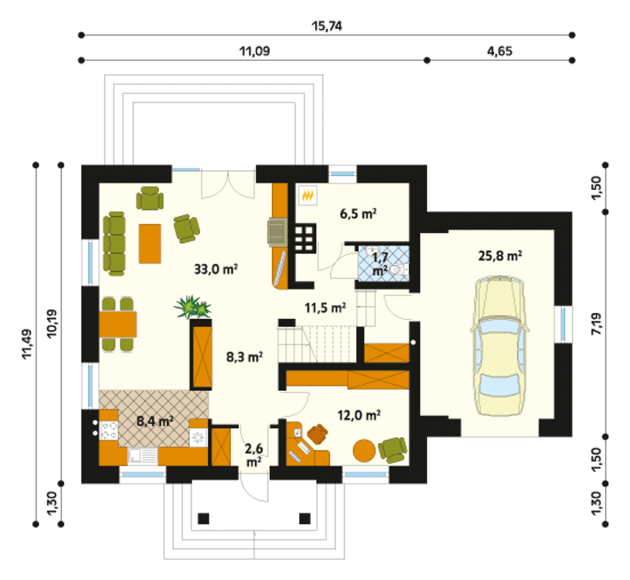 Wypełnij formularz i otrzymaj rysunki w pdf z dokładnymi wymiarami budynku i pomieszczeń (długość, szerokość, wysokość) dla projektu Wierzba
