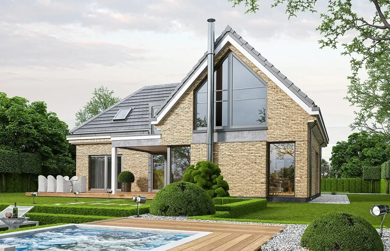 Projekt domu "Willa Eska 2" jest idealny dla osób ceniących sobie wygodę, funkcjonalność i nowoczesny design. Jego przemyślany układ pomieszczeń sprawia, że jest idealny dla rodziny z dziećmi. Świetnym atutem jest także duży salon z kominkiem, który umożliwia stworzenie rodzinnego, przytulnego narożnika.