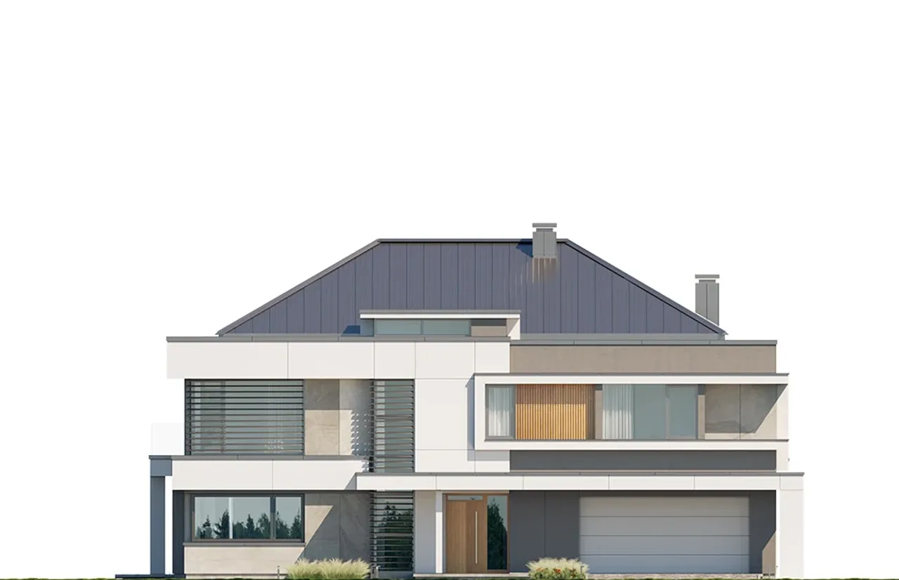 Wybuduj dom, w którym codzienność nabierze zupełnie nowego wymiaru. Całość uzupełnia funkcjonalny garaż dwustanowiskowy dla wygody Twoich bliskich oraz brak podpiwniczenia, co upraszcza realizację inwestycji na większości działek.