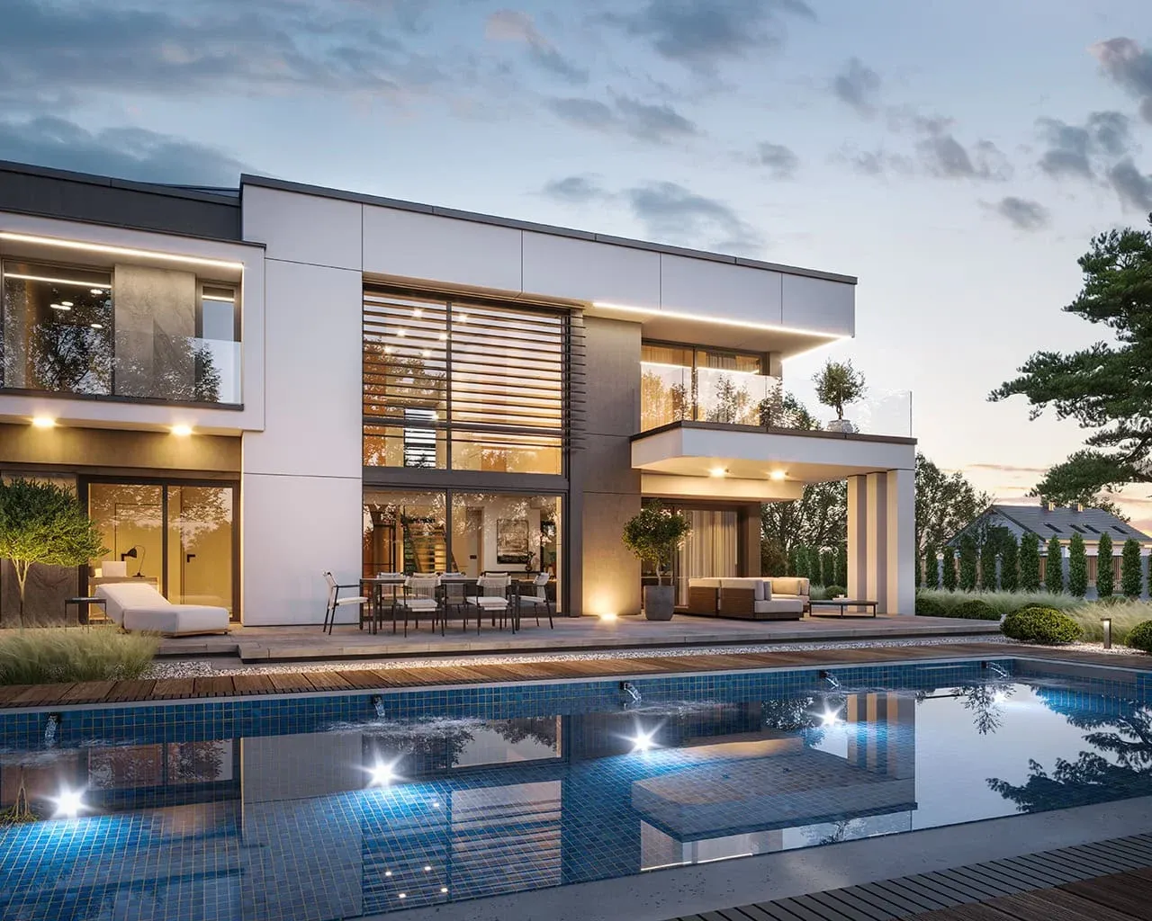 Willa Floryda 7 to propozycja dla osób, które oczekują od domu nowoczesności i funkcjonalności. Ten piętrowy, całoroczny dom jednorodzinny wyróżnia się efektowną bryłą, przestronnymi rozwiązaniami oraz eleganckim tarasem, który płynnie łączy wnętrze z ogrodem. Został zaprojektowany z myślą o rodzinach szukających komfortu, niezawodnych technologii i praktycznych rozwiązań na co dzień.