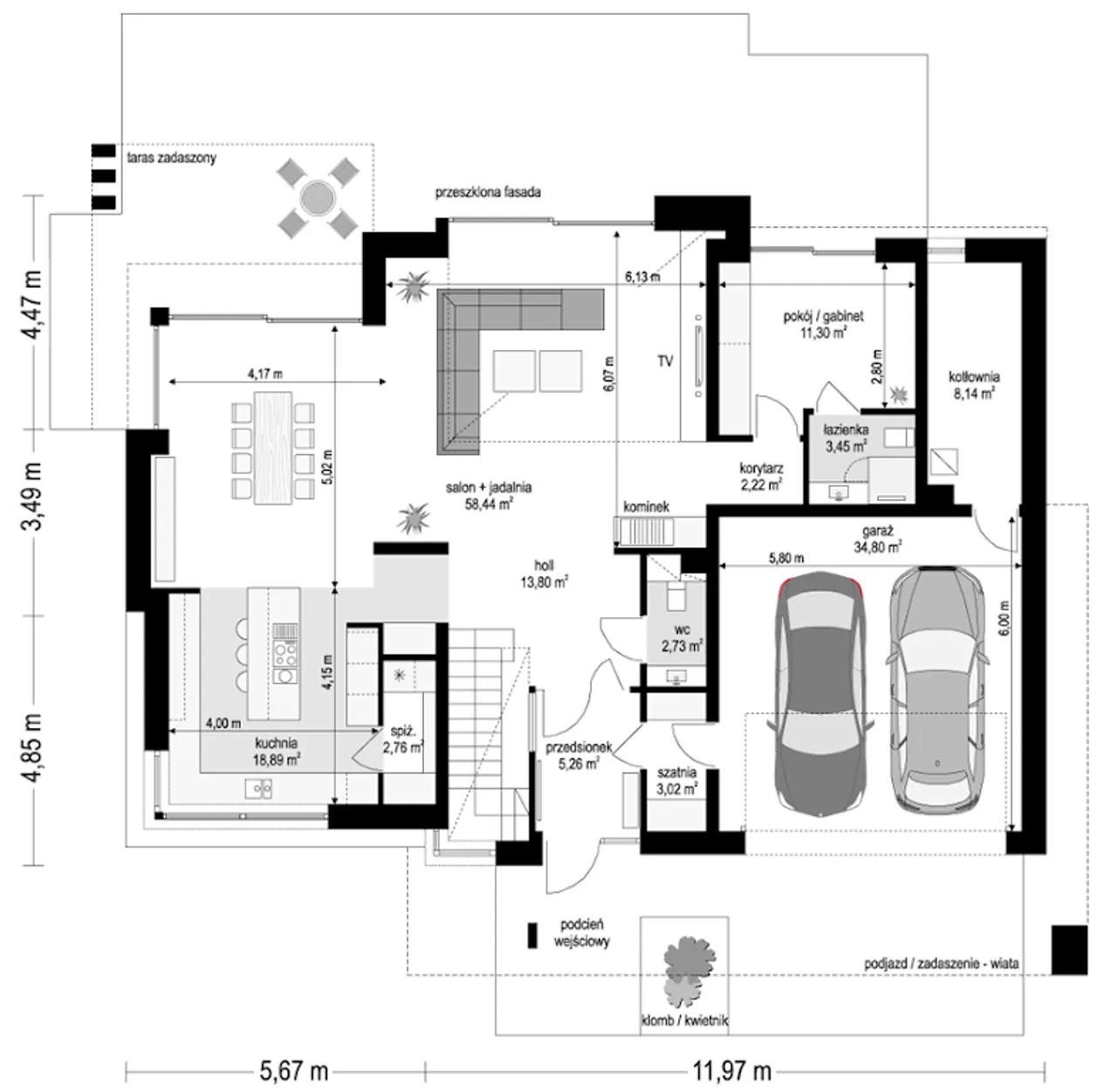 8. Salon / jadalnia | 58,44 m² |