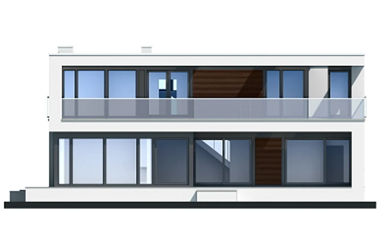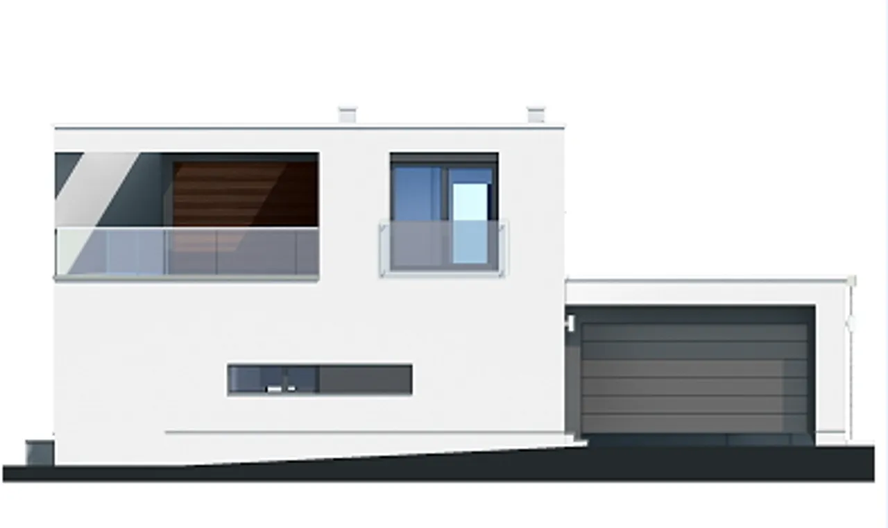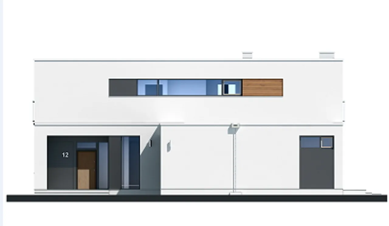 Projekt domu Willa Słoneczna to piętrowa miejska willa o nowoczesnej ale spokojnej architekturze, dla rodziny cztero- sześcioosobowej. Jest to wolnostojący nowoczesny dom piętrowy ze strychem, z płaskim dachem, podpiwniczony, z dwustanowiskowym garażem, z bramą garażową prostopadłą do frontu budynku. Powierzchnia użytkowa 223,89 m2 . Budynek może być posadowiony na działce od 650 m2. Projekt przewiduje ogrzewanie wodne zasilane piecem gazowym zainstalowanym w kotłowni za garażem. Dodatkowo można uzyskać ogrzewanie na bazie kominka. Parter projektu domu Willa Słoneczna przewiduje na parterze otwarty, duży salon w narożnej części budynku, z centralnie położonym kominkiem, doświetlony dużymi, przeszklonymi, rozsuwanymi wyjściami na częściowo zadaszony taras, ustawionymi prostopadle do siebie. Centralnie połozona jadalnia łączy się z otwartą kuchnią z dużą wyspą roboczą, zakończoną kącikiem śniadaniowym. Przy kuchni mała spiżarnia. Jadalnia i kuchnia mają wspólne przeszklone rozsuwane wyjście na taras. Obok salonu pokój typu "gabinet" oraz łazienka. W holu schody na piętro otwarte na jadalnię. Na piętrze znajdują się sypialnia małżeńska z własną garderobą i łazienką, trzy sypialnie (jedna z wyjściem na taras) i wspólna łazienka. Wszystkie sypialnie z rozsuwanym wyjściem na duży taras. W piwnicy małe SPA z jaccuzi i sauną oraz WC z natryskiem. Nowoczesna piętrowa forma z płaskim dachem, z maksymalnym otwarciem wnętrza domu na ogród, przy jednoczesnej minimalnej ekspozycji od strony frontowej. Elewacja frontowa, z niewielką ilością okien, z dużą białą powierzchnią ścian, jest przeciwieństwem otwartej, przeszklonej elewacji ogrodowej, urozmaiconej podcieniami i tarasami. Charakterystyka Energetyczna dla tego projektu jest zgodna z aktualnie obowiązującymi przepisami prawa budowlanego.
