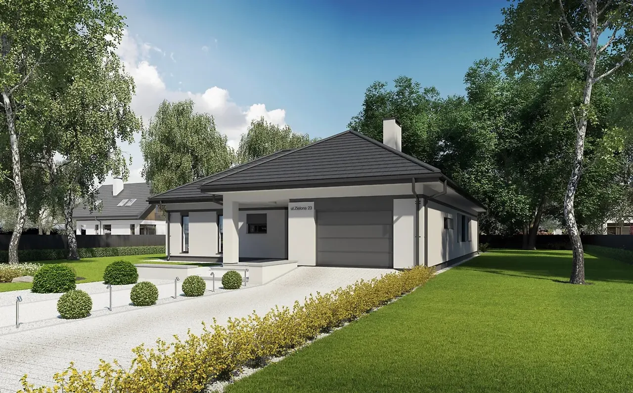 Projekt zachwyca niesamowitym połączeniem nowoczesności z klasycznym stylem. Doskonale wpisuje się w oczekiwania na wymarzony dom. Koncepcja przestrzeni jest przemyślana i elegancka.