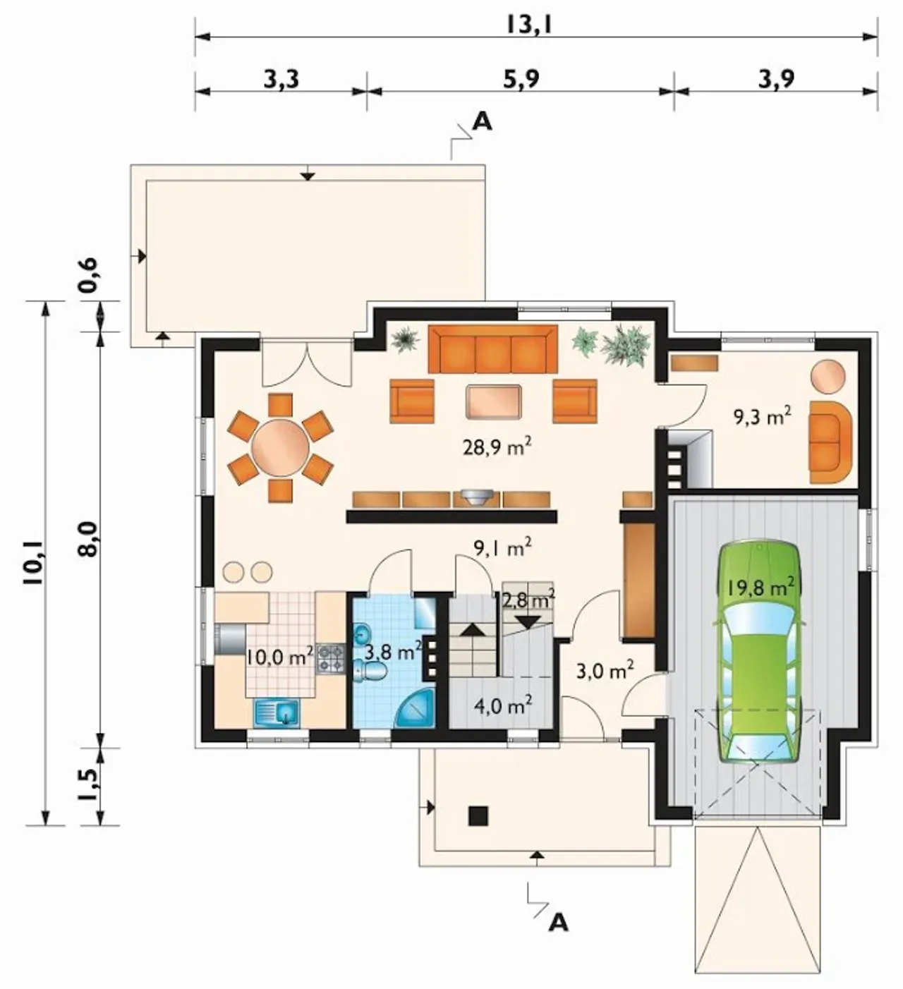 - elewacje - pokazują dokładny wygląd domu od frontu, z tyłu i z boków