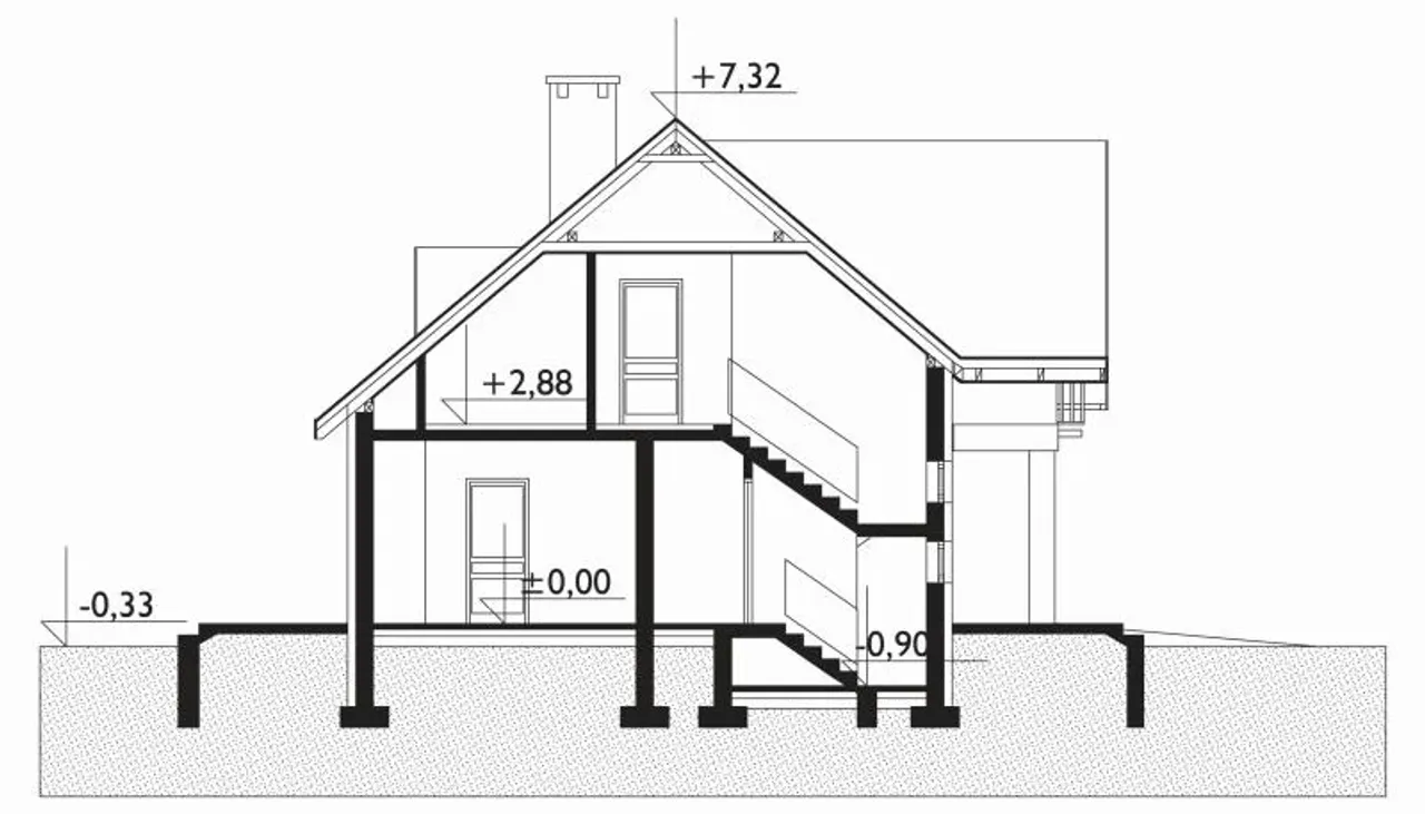 - przekroje - pokazują wszystkie elementy budynku po przecięciu go wzdłuż lub w poprzek od dachu do fundamentów tj. warstwy podłogi, stropów i dachu