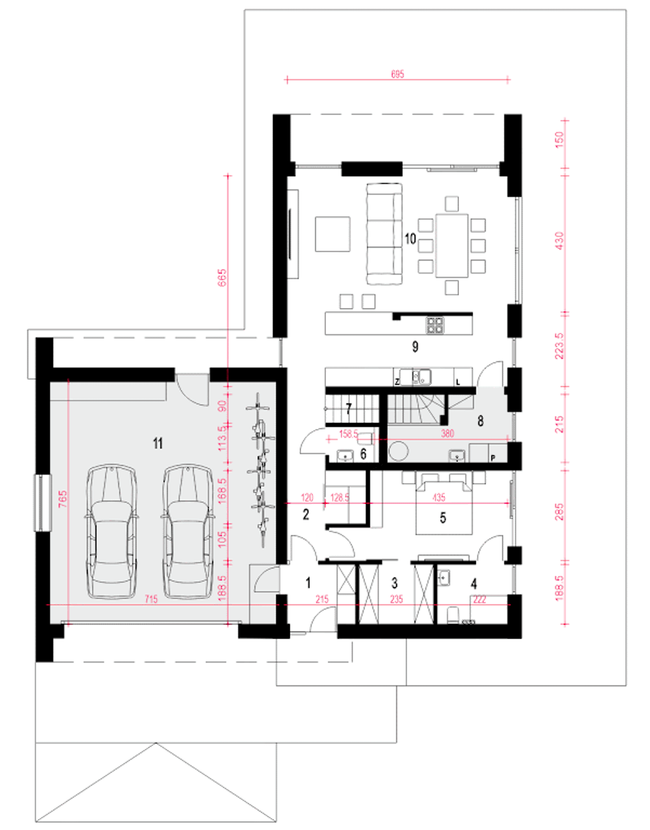 Wypełnij formularz i otrzymaj rysunki w pdf z dokładnymi wymiarami budynku i pomieszczeń (długość, szerokość, wysokość) dla projektu Wygodny z garażem 2-st. A1