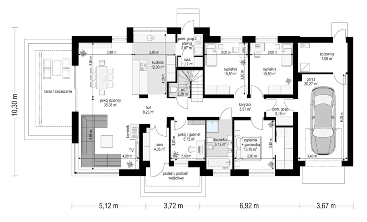 Wypełnij formularz i otrzymaj rysunki w pdf z dokładnymi wymiarami budynku i pomieszczeń (długość, szerokość, wysokość) dla projektu Wymarzony 7