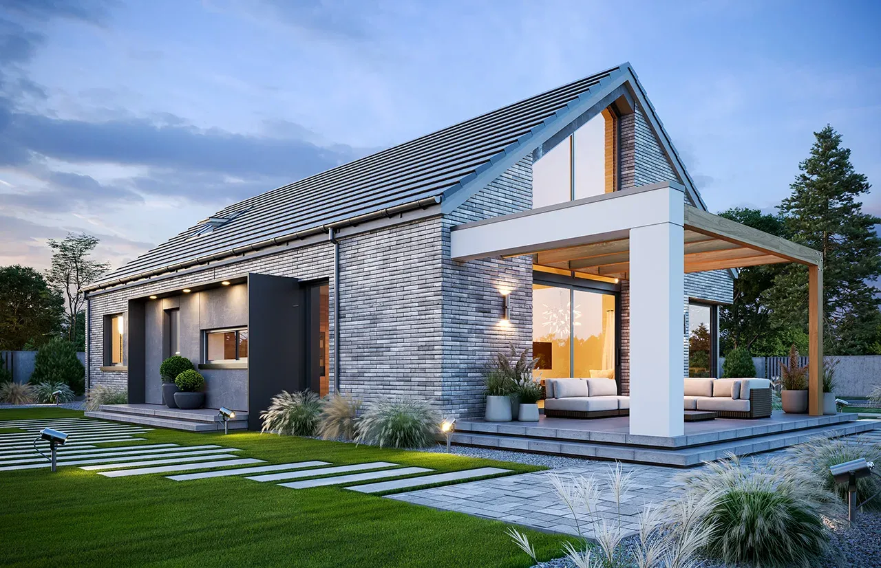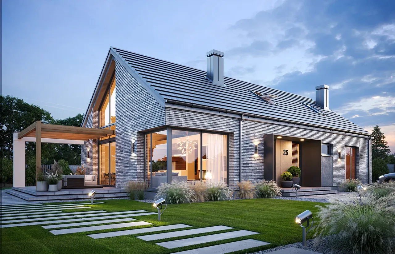 - Elewacje: płytki klinkierowe.