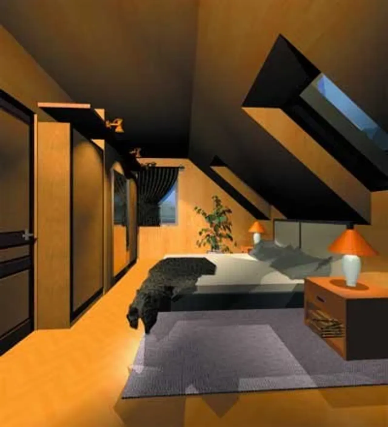 - rzut dachu - ukazuje jego kształt, wymiary, kąt nachylenia połaci, rozmieszczenie okien połaciowych, lukarn, świetlików i rur spustowych, pokazuje rozmieszczenie kominów i informuje o sposobie odwodnienia: rozmieszczeniu i rozmiarach rynien