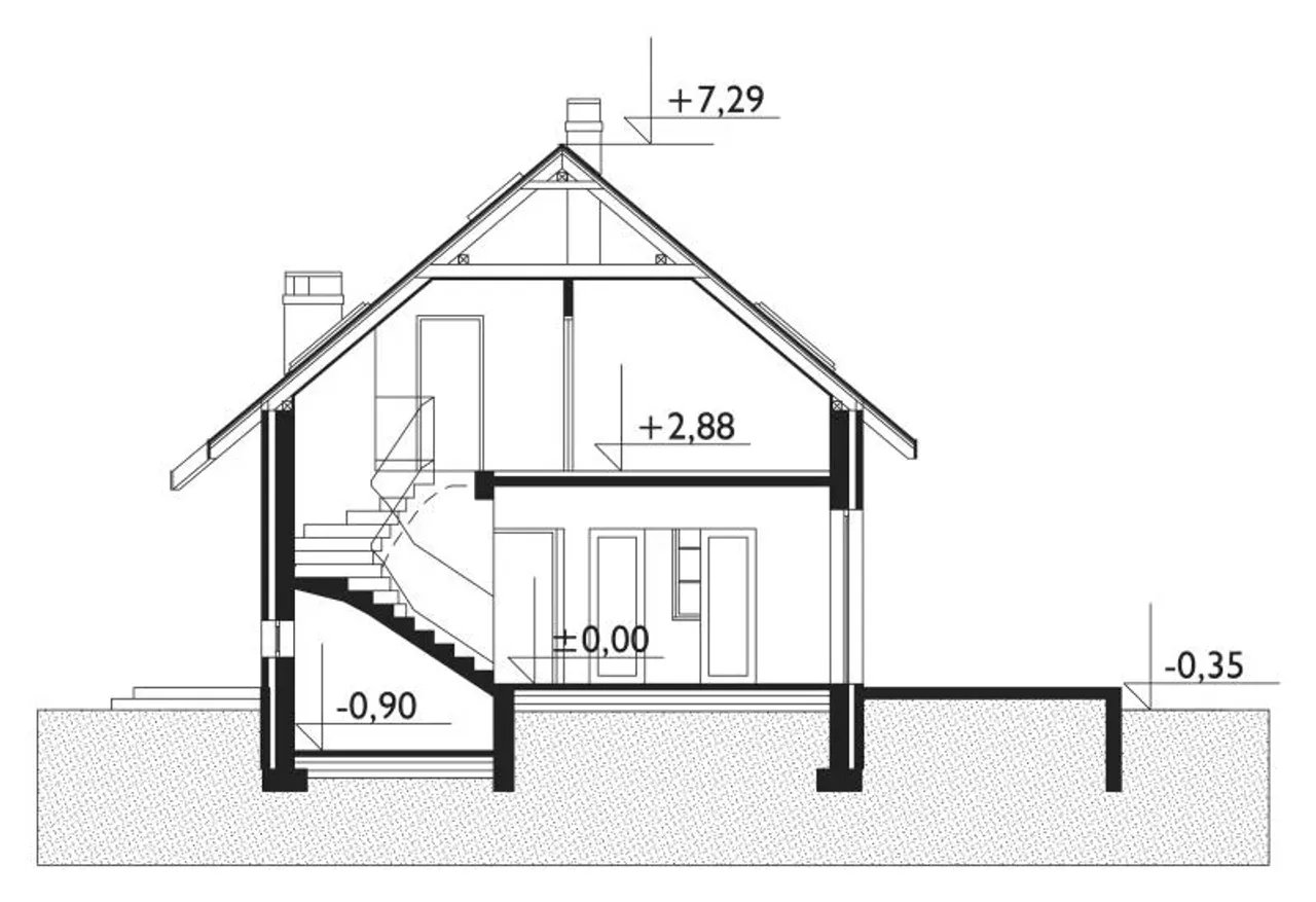 - przekroje - pokazują wszystkie elementy budynku po przecięciu go wzdłuż lub w poprzek od dachu do fundamentów tj. warstwy podłogi, stropów i dachu